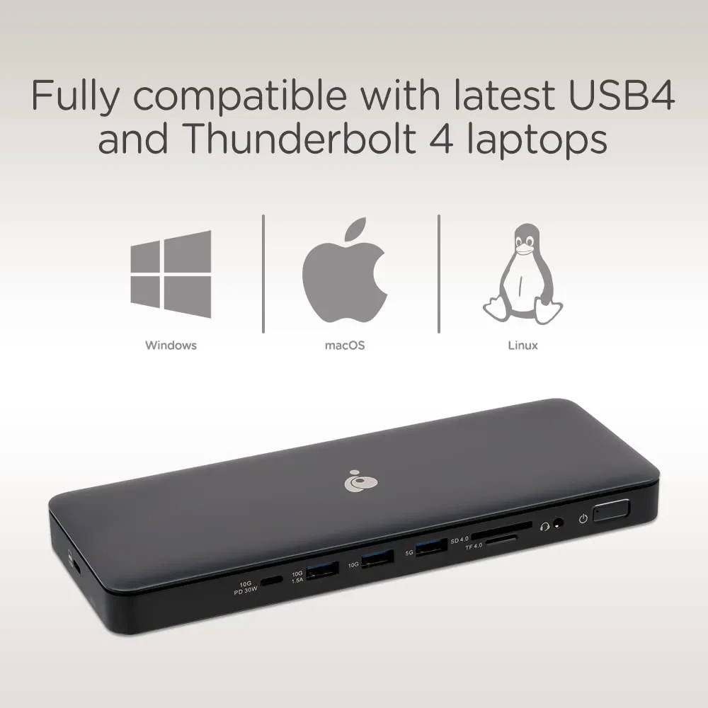 IOGEAR Dock Pro USB4 8K Triple View Docking Station, 96W PD, 8K, HDMI, DP-Alt mode, Displayport, USB-A Gen 2, USB-C Gen 2, Thunderbolt compatible, Windows 10 11, Mac, GUD4C8K3