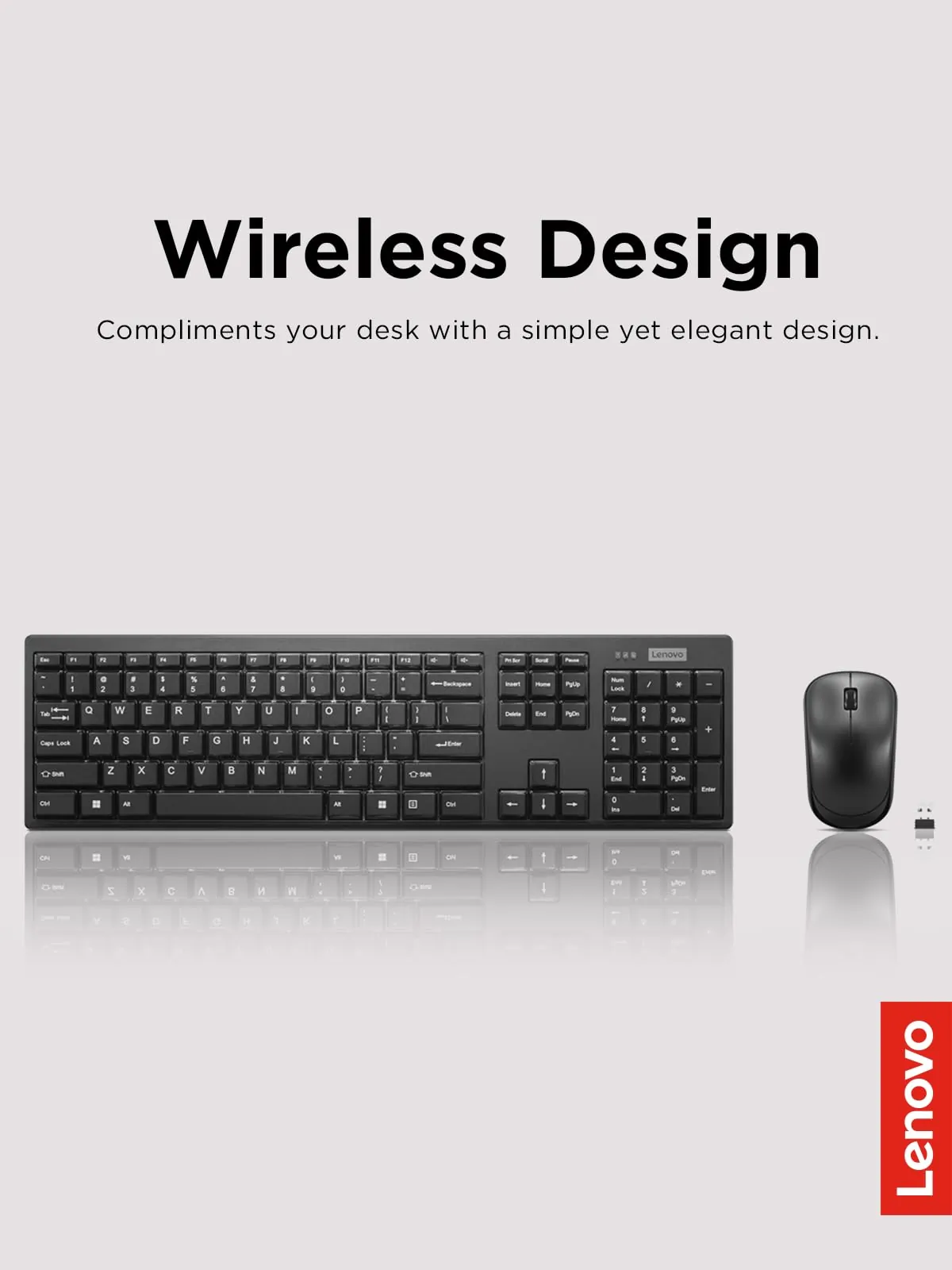 The Lenovo 100 Wireless Keyboard and Mouse Combo provides a seamless and enjoyable experience for both casual and professional use. Designed for comfort and ease of use, this combo offers a reliable wireless connection, ensuring you stay connected without the hassle of cables.