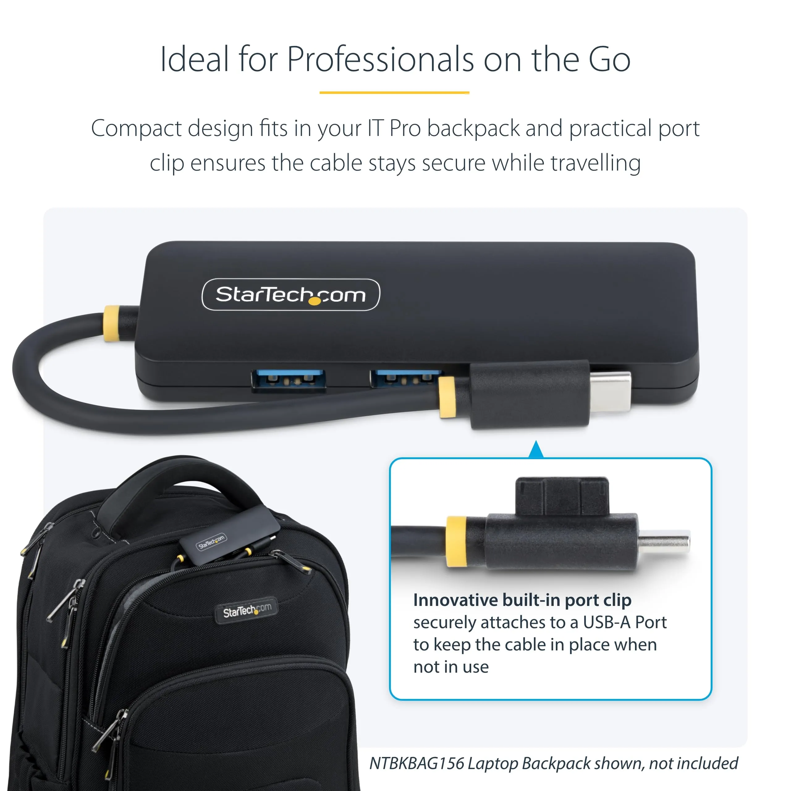 - Bus-powered USB 3.0 expansion hub with compact plastic housing and built-in USB-C host cable connects up to four USB devices to a computer with a single USB-C port; Support for 5Gbps - Plug-and-play installation; Installs automatically when connected to a computer - Works on all operating systems including Windows/macOS/Linux/ChromeOS - Cable Management Clip prevents tangles; Three ports on one side and one on the end for easy access when connecting/disconnecting devices