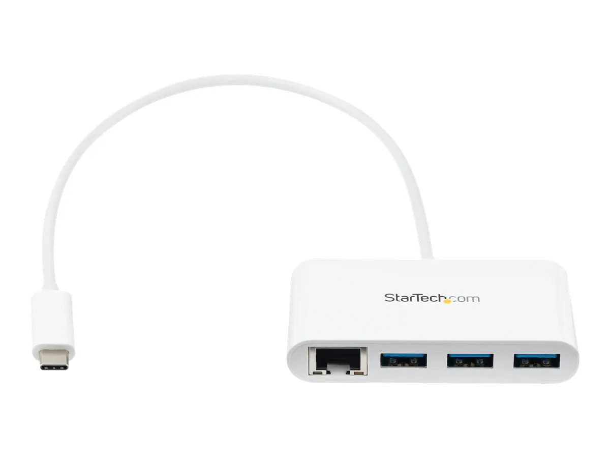 StarTech HB30C3A1GEA USB-C to Ethernet Adapter with 3 Port USB C Hub - Gigabit - White - Thunderbolt 3 Compatible - MacBook Pro 2016