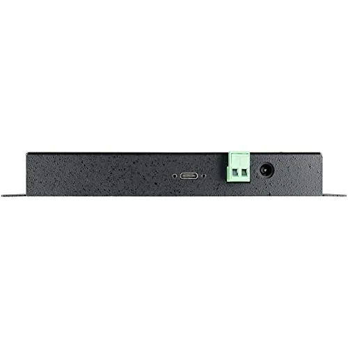 This USB hub has a rugged-metal enclosure with built-in mounting ears that enable you to mount it to any wall or surface. The hub features 15kV Air and 8kV Contact electrostatic discharge protection, with 350W surge protection. Each port on the Hub has a screw lock, avoiding the possibility of accidental cable disconnection and a 3.3 ft (1m) USB-C & USB-A host cables is included that features a locking screw.