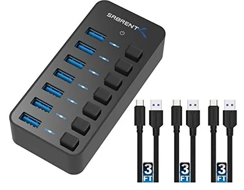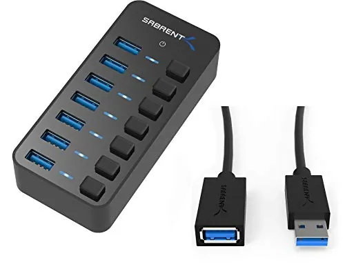 The 36W 7-Port USB 3.0 Hub is designed to simplify your connectivity needs. Each port comes with individual power switches and LED indicators, allowing you to manage your devices effortlessly. Perfect for home or office use, this hub enhances efficiency and organization.