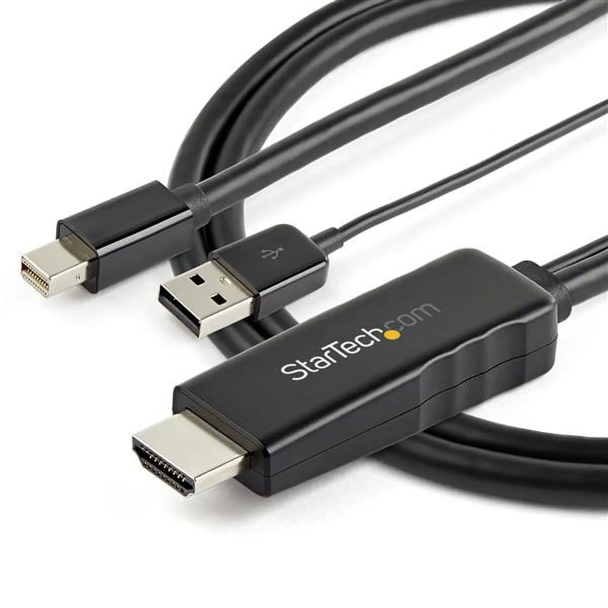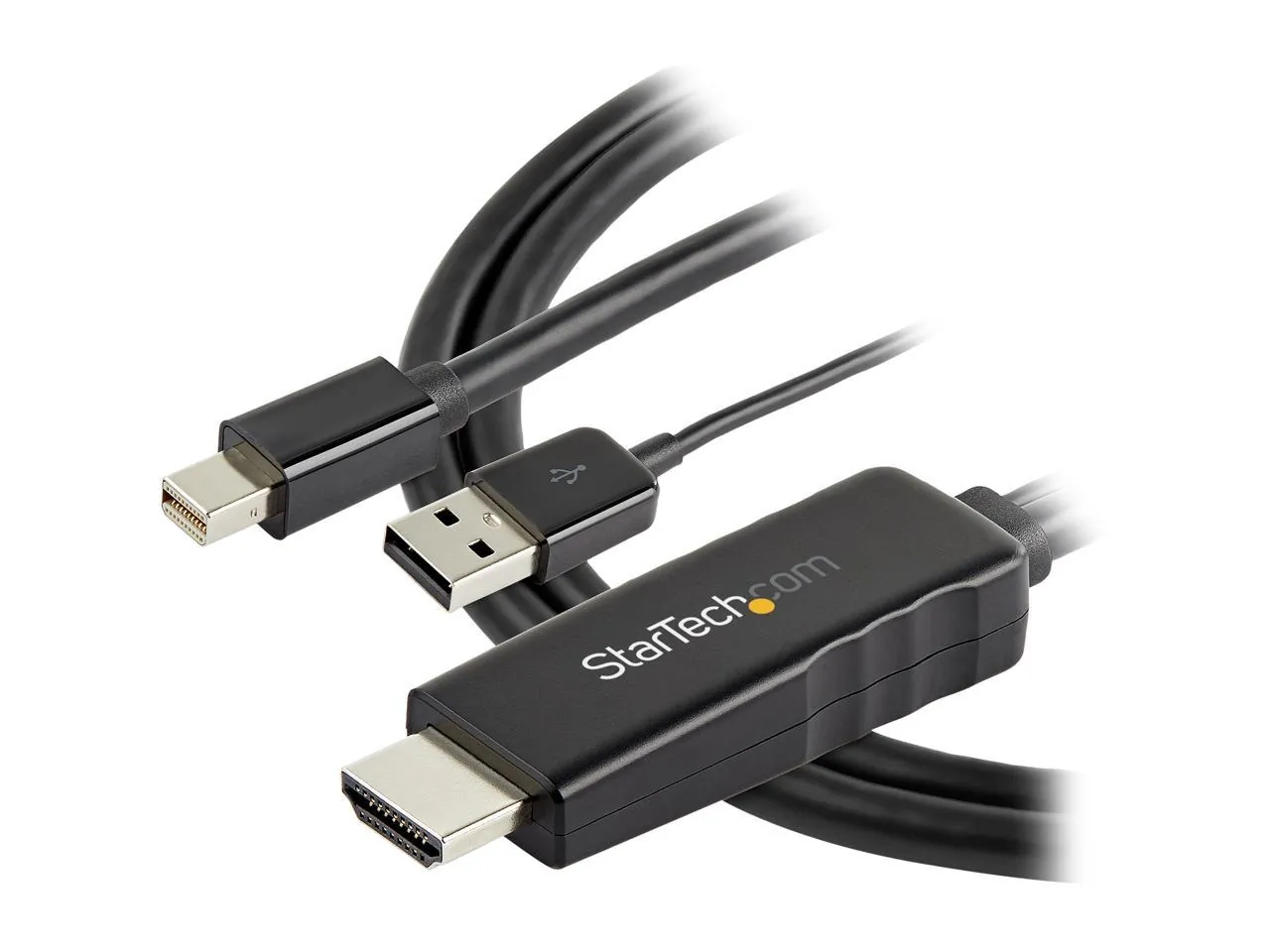 The StarTech HDMI to Mini DisplayPort Cable (6.6 ft / 2 m) allows you to connect your HDMI devices to Mini DisplayPort displays. It supports 4K resolution at 30Hz, delivering high-quality video output. This active video cable is USB-powered for enhanced performance and compatibility with both Mac and Windows systems.