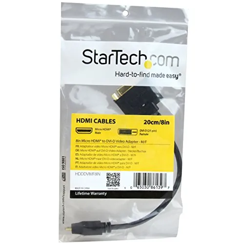 The HDDDVIMF8IN Micro HDMI to DVI adapter is backed by StarTech.com's lifetime warranty.