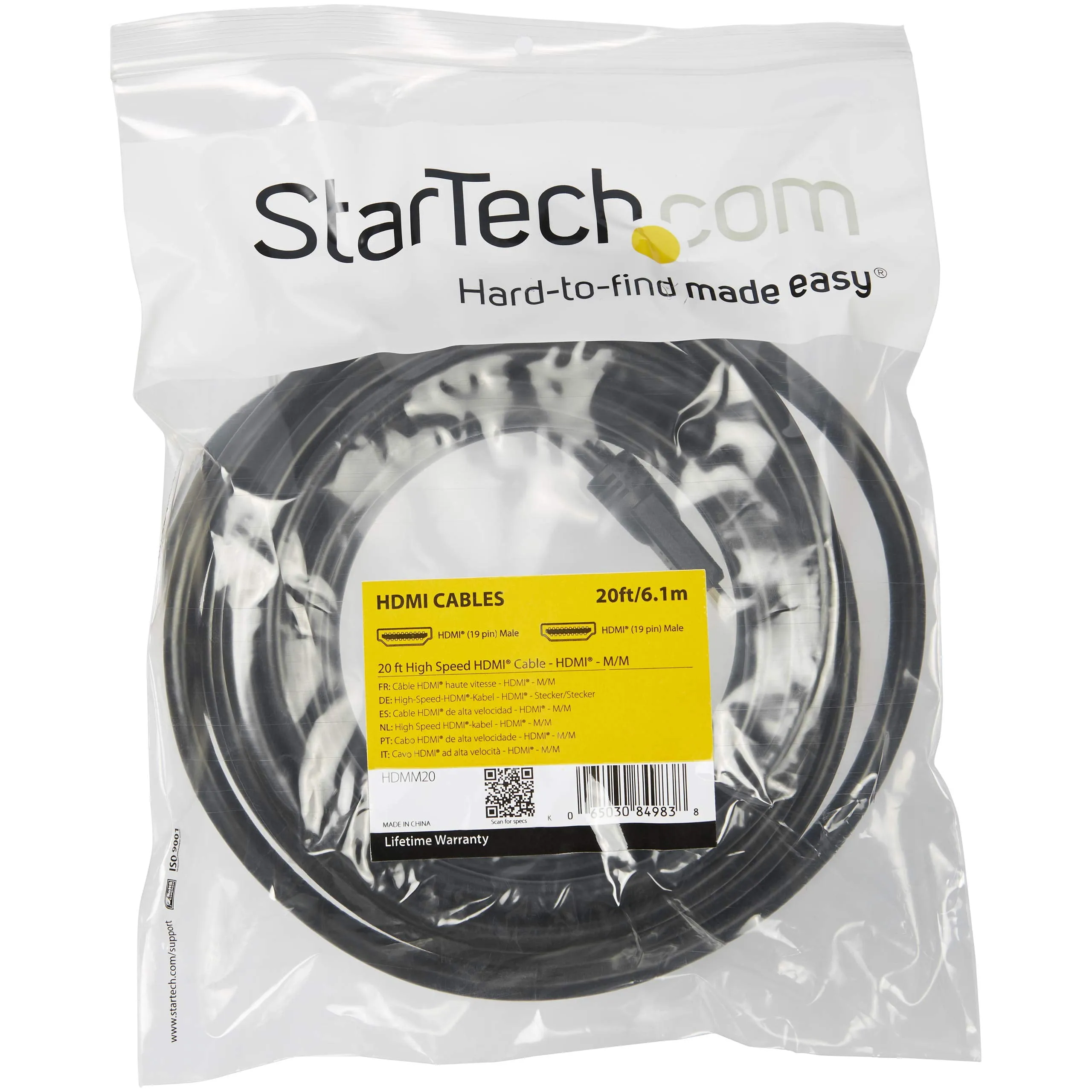 Startech 20ft High Speed HDMIr Cable HDMM20 - Ultra HD 4k x 2k HDMI Cable - HDMI to HDMI M/M- 20ft HDMI 1.4 Cable - Audio/Video Gold-Plated