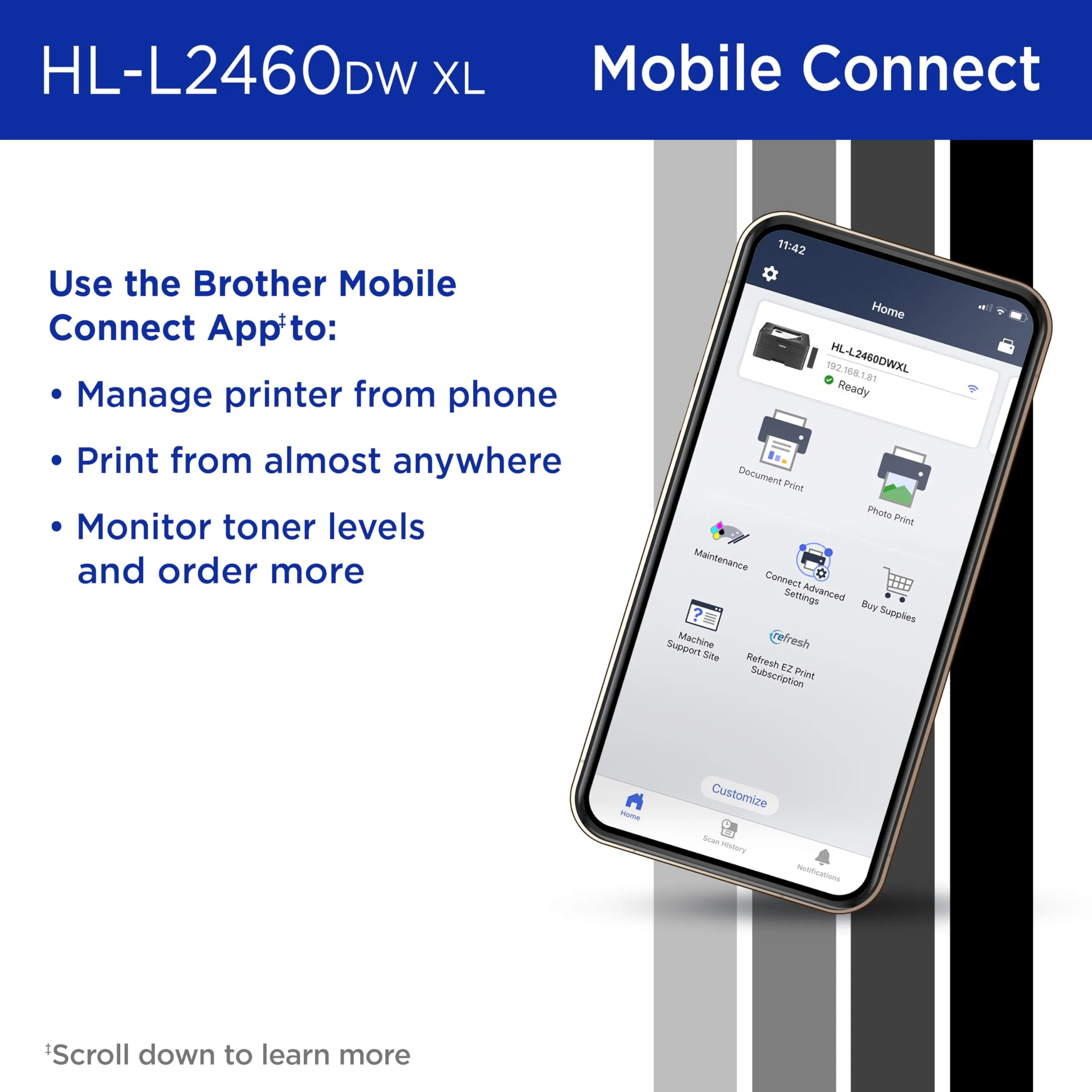 The Brother HL-L2460DW XL is a reliable monochrome laser printer designed for efficiency and high-quality printing. With wireless connectivity and a compact design, it fits seamlessly into any home office or workspace.