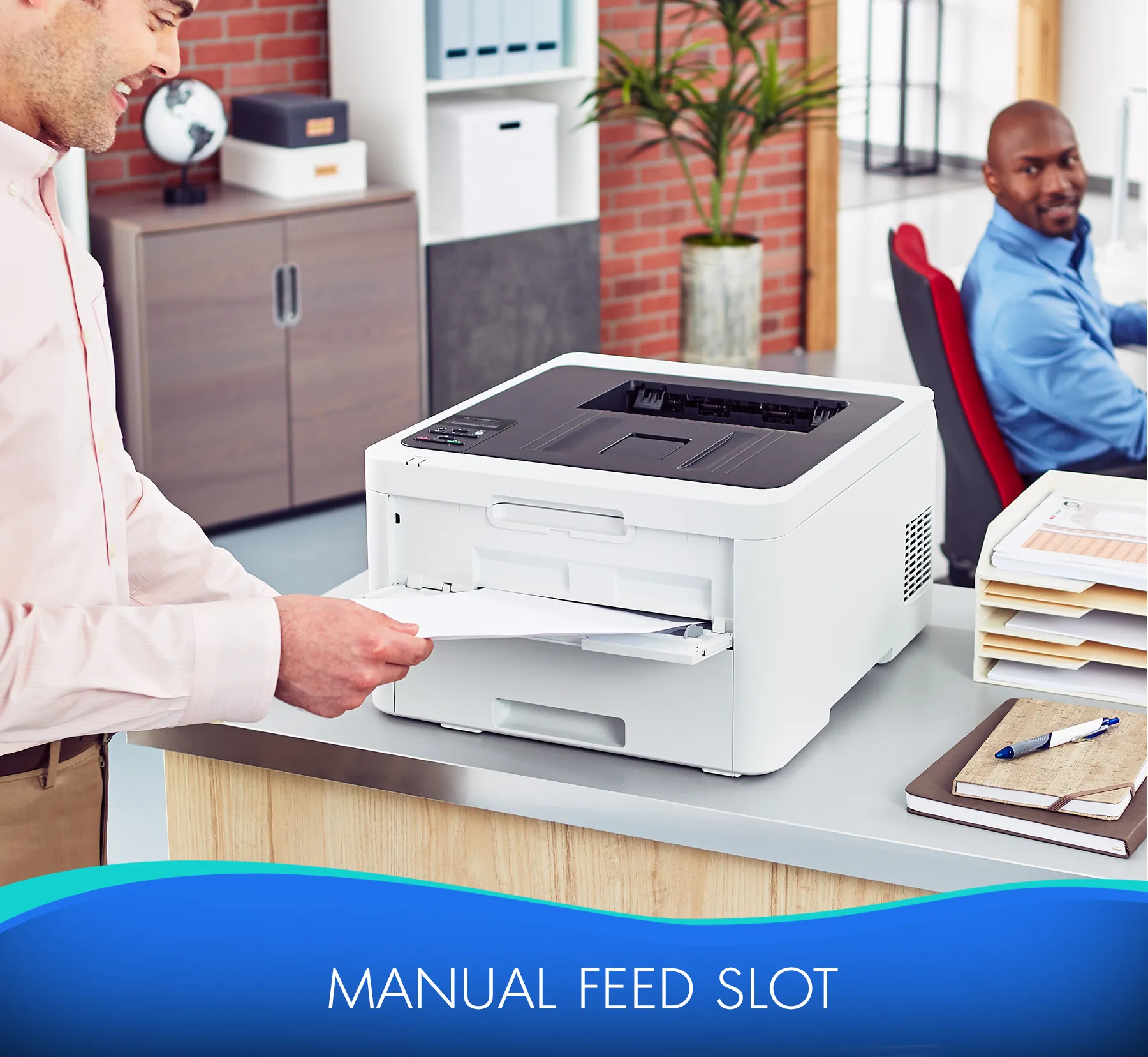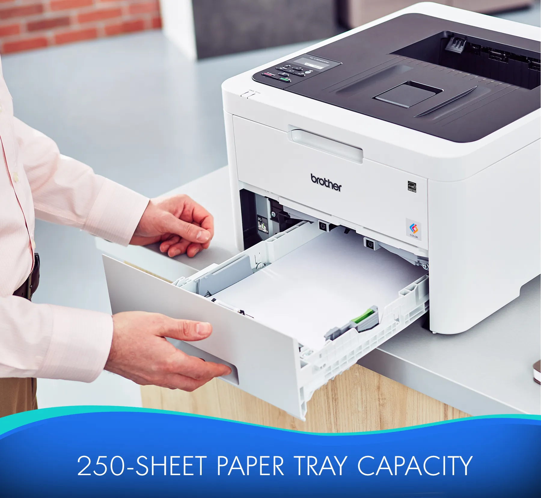 Digital color printer offers quick print speeds up to 25 pages per minute to accommodate the varied printing needs for busy home or small offices. Manual feed slot can handle a variety of paper sizes and types, including cardstock, envelopes and more. Connect with versatile options including built-in wireless, Ethernet or USB interfaces and print wirelessly from mobile devices. The 250-sheet capacity, adjustable paper tray helps improve efficiency with fewer refills and handles letter-size or legal-size paper. Automatic two-sided printing helps save on paper costs. Plus, it's compatible with Brother Genuine high-yield replacement toner cartridges (sold separately) to help minimize your printing costs.