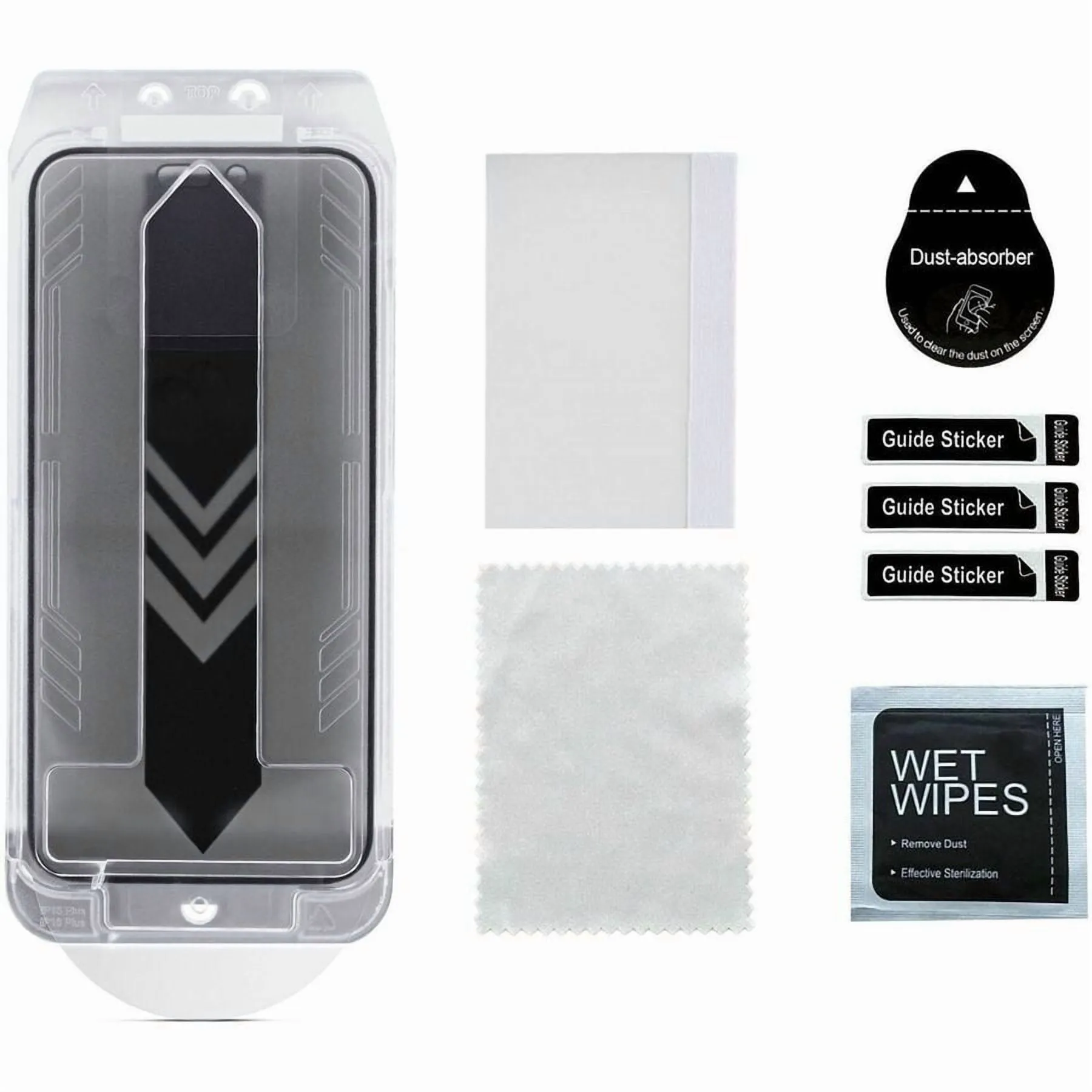 4-way privacy screen for iPhone 16 Pro obscures the display from the sides to prevent visual eavesdropping - Effective in portrait or landscape orientation; +/- 30 viewing angle - Touch-enabled privacy filter for interactive use - Includes applicator frame/ensures bubble-free/hassle-free one-time installation - Exact fit tempered glass screen protector won't interfere with sensors/front camera/speakers - 360 security screen blocks up to 51% of blue light for visual comfort; Glossy finish