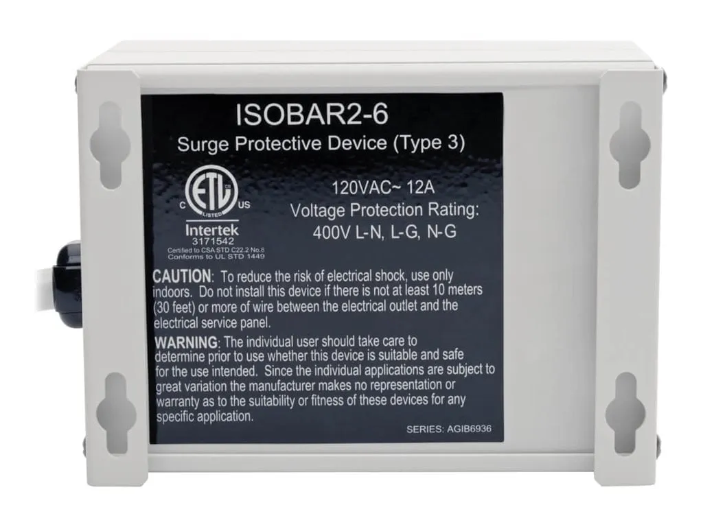 Tripp Lite, Surge Protector, 2 Outlet, 6FT Cord, 1410 Joules, ISOBAR, All Metal Housing