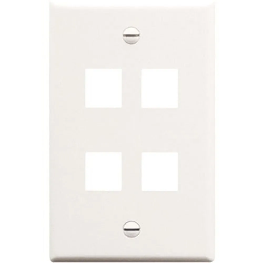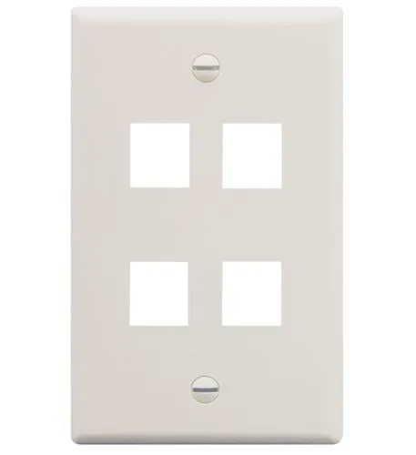 - Faceplate- 4 Port- Single gang- Port fits all ICC jacks and modules- Easy snap-in port design- Contemporary design- White