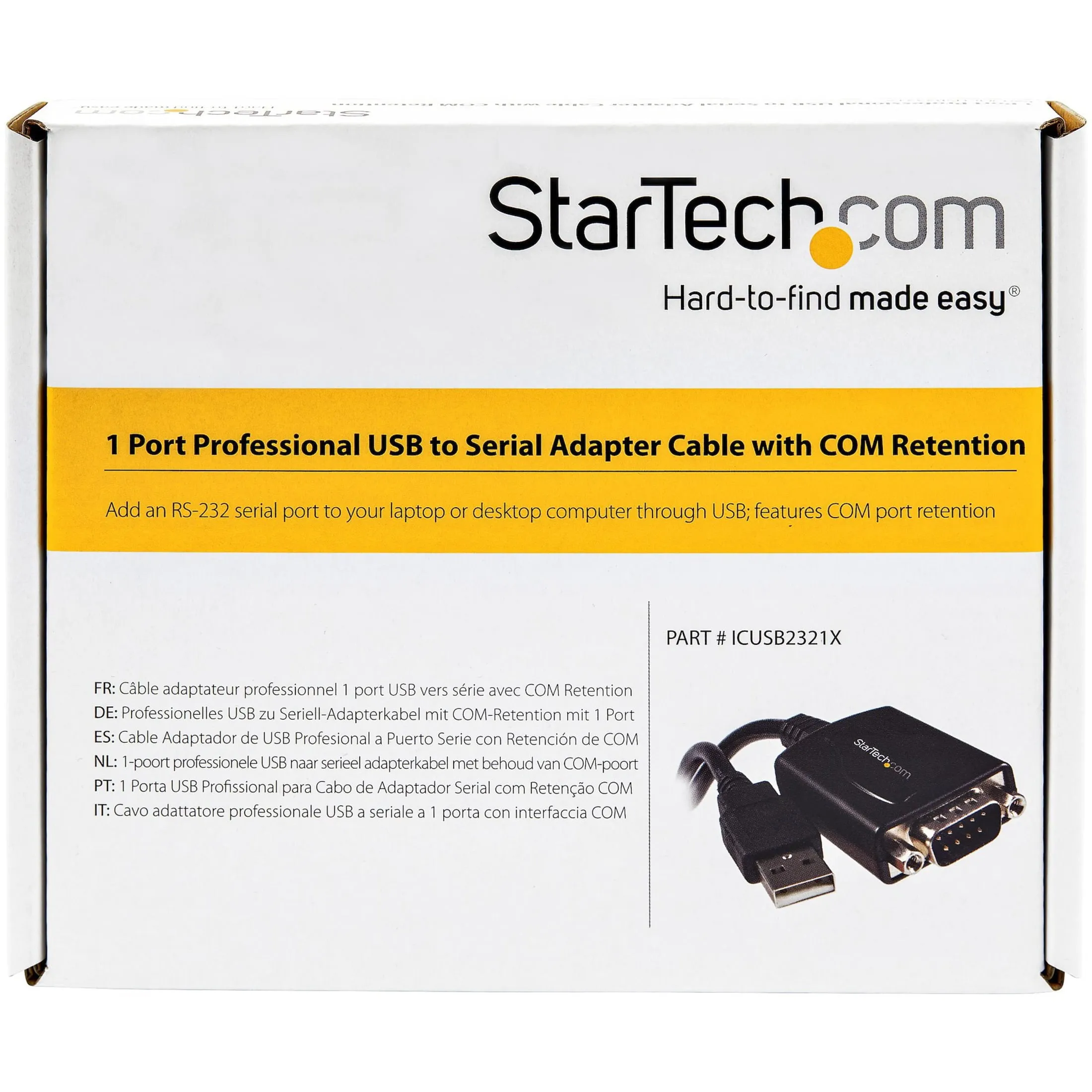 This professional grade USB to Serial Adapter cable converts a USB port into an RS232 serial port. The adapter retains assigned serial COM port values allowing the same values to automatically be assigned to the adapter serial ports if disconnected.