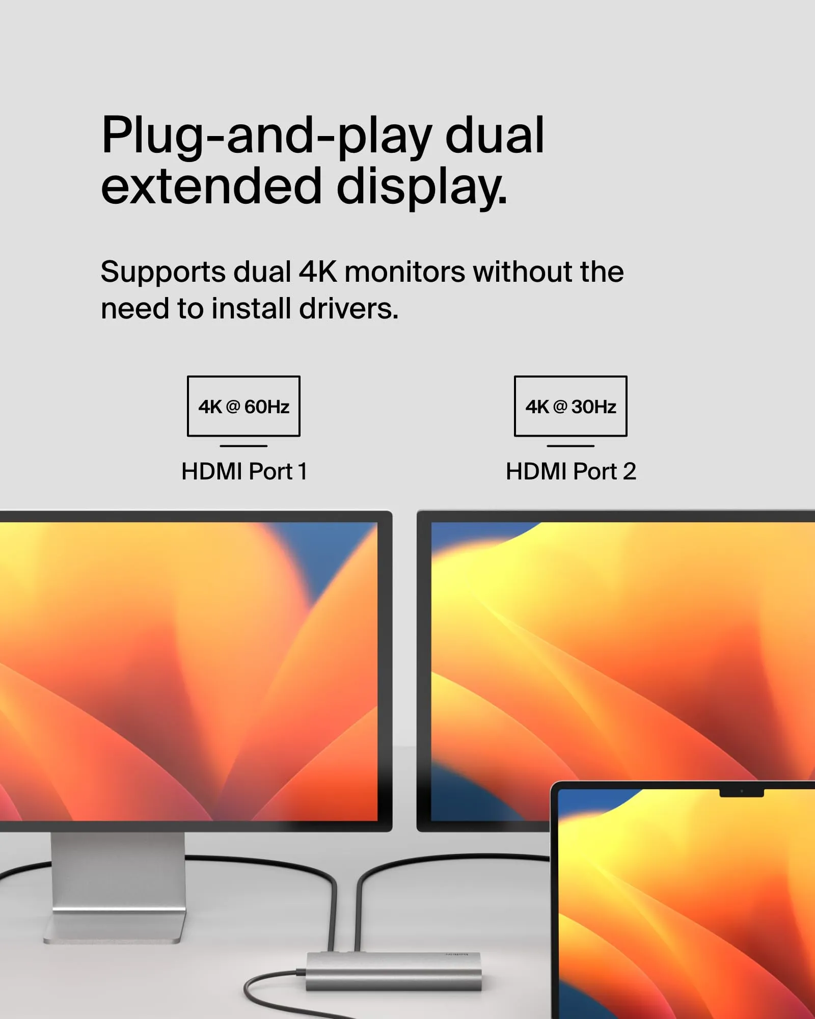 The USB-C 8-in-1 Dual Display Hub is the ultimate connectivity solution for your devices.