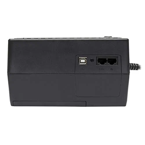 Tripp Lite's INTERNET600 Internet Office Standby UPS offers complete protection for PCs, workstations and other sensitive electronics in an attractive ultra-compact, mountable housing. Prevents data loss and system downtime by providing battery supported AC output during brownouts and blackout conditions. 8 output receptacles, two of which are widely-spaced to accommodate large transformer plugs without blocking outlets. 4 outlets with full battery support and surge suppression protect computers, monitors and other vital system components from loss of power. 4 additional outlets with surge suppression-only are ideal for printers and other accessories not requiring battery support. Single line telephone suppression jacks protect modem, fax machine, cordless phone or other peripherals with a standard dialup or DSL phone line connection. USB with PowerAlert monitoring software (available via web download) and cabling enables safe unattended system shutdown in the case of extended power failure.
