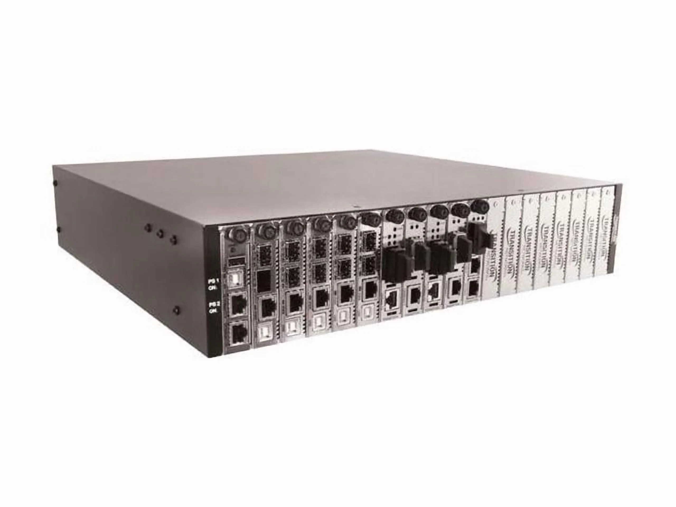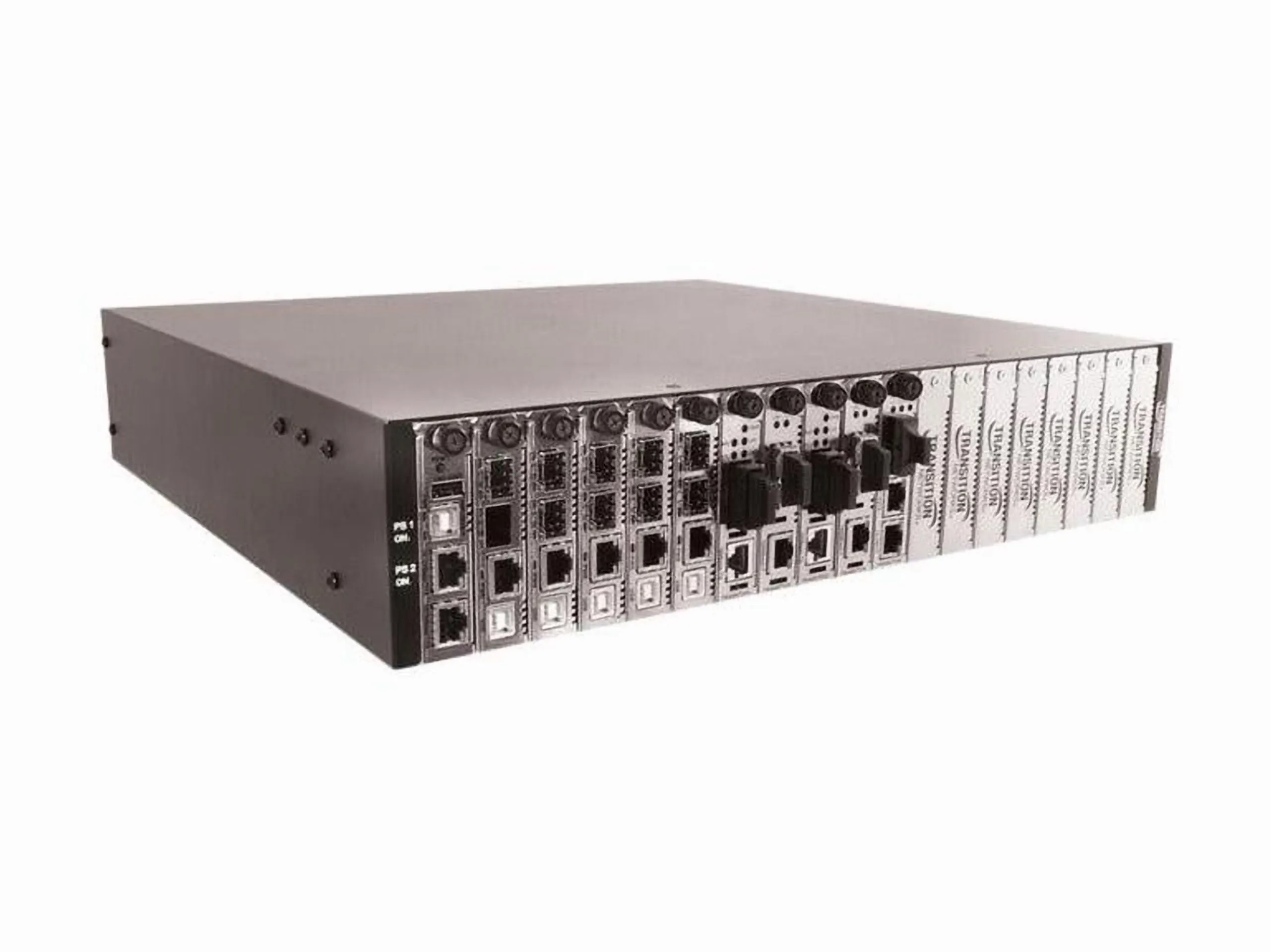 The Transition Networks 19-Slot Chassis for The ION Platform serves as a robust modular expansion base designed to accommodate various ION modules. This chassis facilitates the deployment of multiple network solutions within a single platform, allowing for easy scalability and management of your network infrastructure.