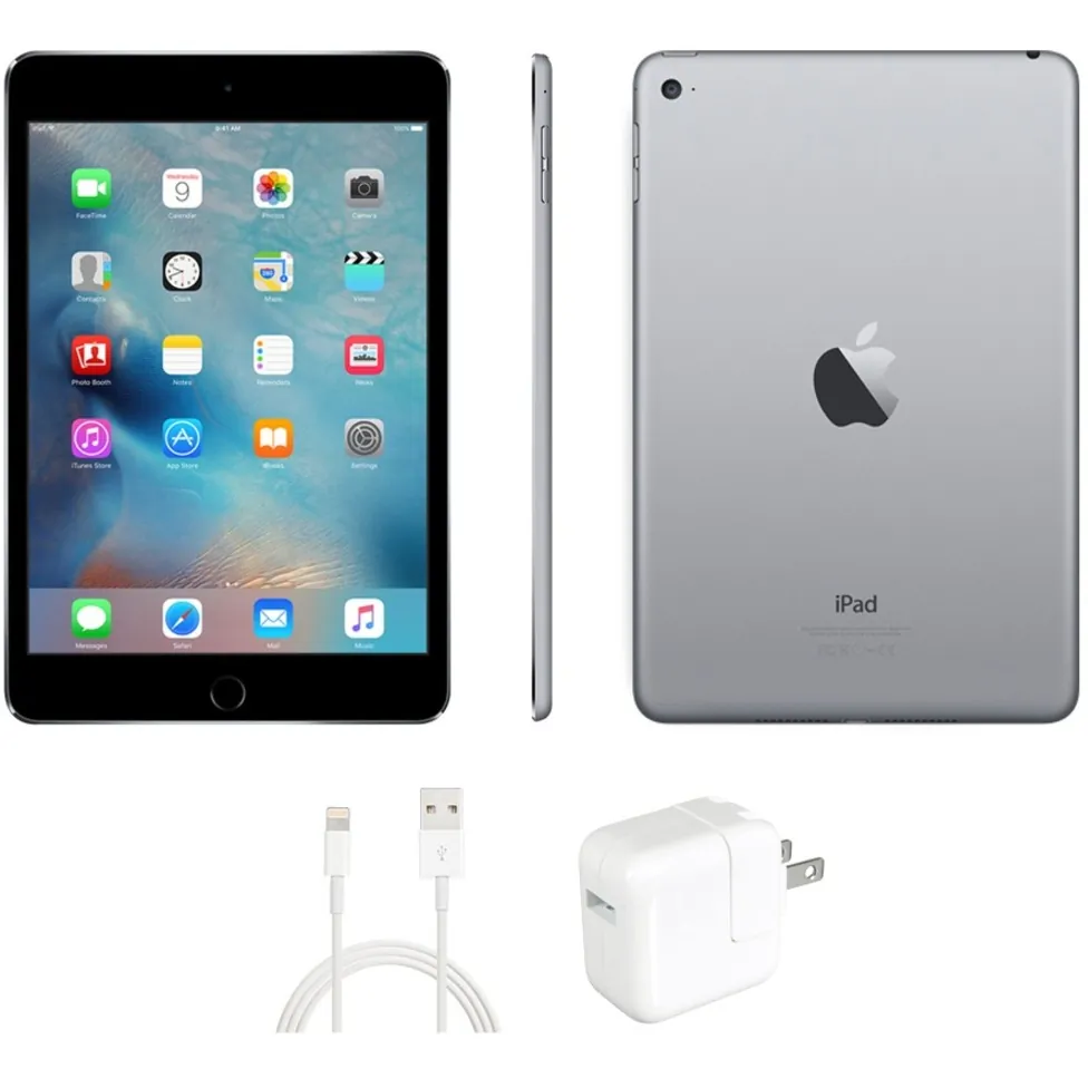 Refurbished iPad Mini 4 Space Gray 128GB Wifi Only. UL charging block and MFI charging cable included