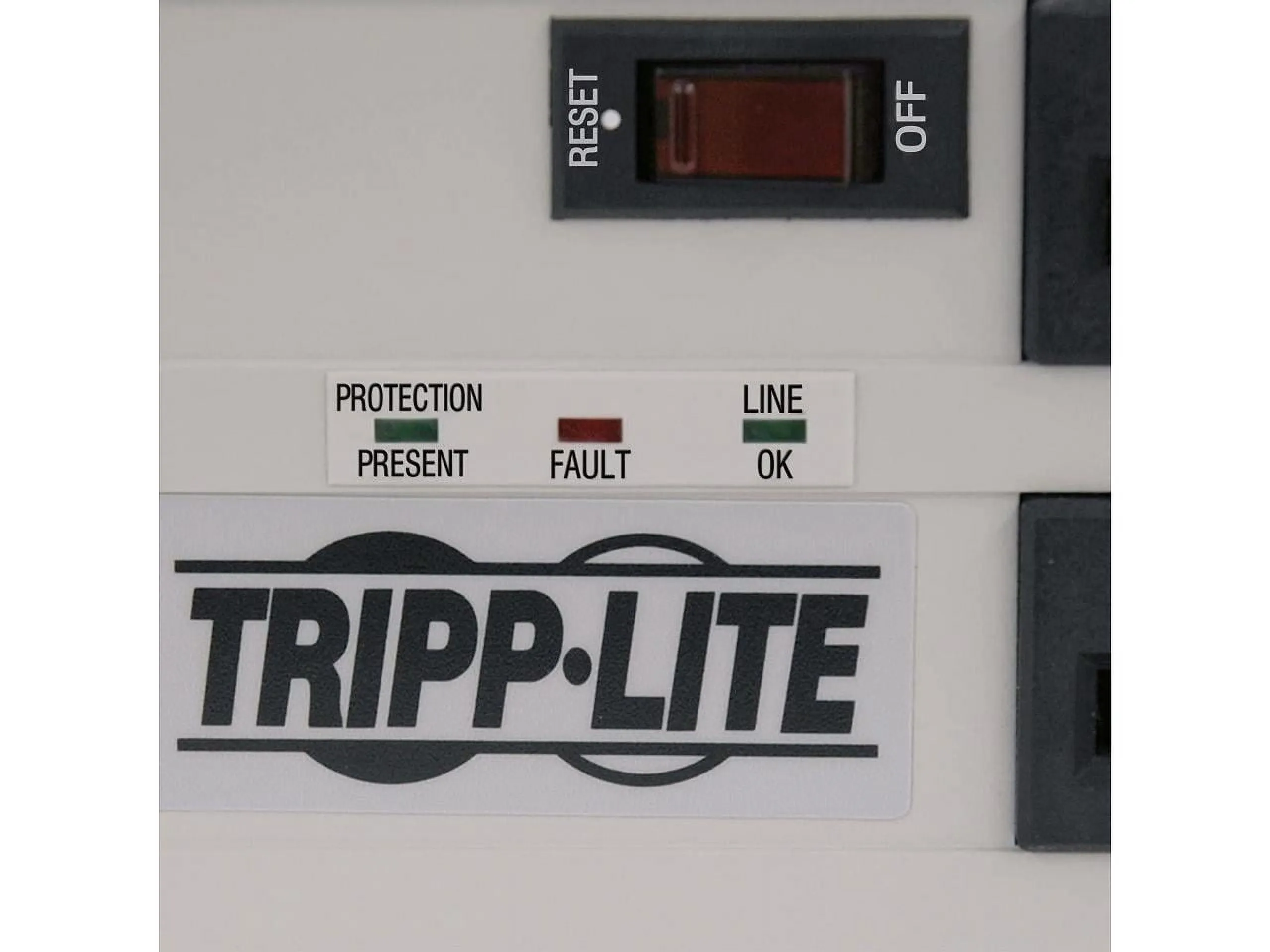 PROTECTION PRESENT (green), LINE FAULT (red) and LINE OK (green)