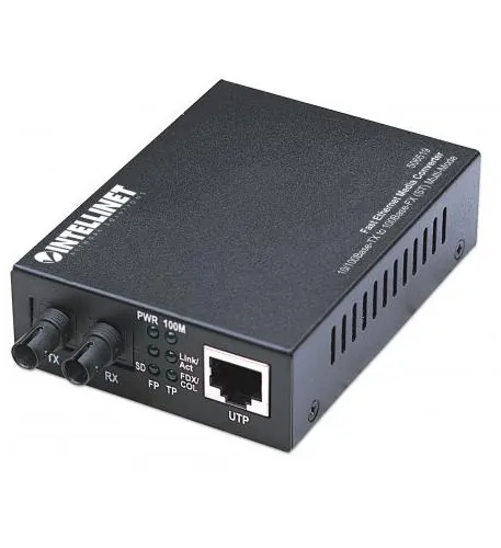 General InformationThe Intellinet Network Solutions Fast Ethernet Media Converter was specifically designed to offer the network designer a device for migration from copper-based Ethernet to Fiber Ethernet. Now migration or expansion of existing networks can be achieved with minimum cost and complexity. The converter is completely transparent to the network so the network performs exactly the way it did before - only now it can support both copper and fiber mediums. Expands the Size of an Existing Network Provides fiber connectivity to Ethernet segments, allowing for even further networking expansion between extended workgroups. Also provides building-to-building connectivity without the need for the cost and disruption associated with the installation of additional routers. Enhances the Distance between Networking Devices Connecting the converter to fiber segments can further extend distances between networking nodes. This can be achieved by direct connection between the converter and a fiber-based node or networking device. Cabling Flexibility Network managers can install fiber cabling anywhere within a network without changing the arrangement of copper-based Ethernet. The compact size of the converter allows it to be easily deployed in any narrow desktop location or to be used in a wall-mount installation. Several converters can be simultaneously installed into a 19" rack-mountable chassis.Interfaces/PortsTotal Number of Ports: 2Network (RJ-45): YesDVI: NoUSB: NoManagement Port: NoNumber of Network (RJ-45) Ports: 1Number of ST Ports: 1ST Port Type: DuplexMedia & PerformanceMedia Type Supported: Twisted PairMedia Type Supported: Optical FiberFiber Mode Supported: Multi-modeFiber Optic Wavelength: 1310 nmMaximum Distance Supported: 1.24 MileFiber Optic Cable Standard: 50/125 mFiber Optic Cable Standard: 62.5/125 mNetwork & CommunicationEthernet Technology: Fast EthernetNetwork Technology: 10/100Base-TXNetwork Technology: 100Base-FXPower DescriptionPower Source: AC AdapterPhysical CharacteristicsForm Factor: ExternalHeight: 1"Width: 2.8"Depth: 4.2"Weight (Approximate): 1.10 lbMiscellaneousPackage Contents: Fast Ethernet Media ConverterExternal Power AdapterUser ManualWarrantyLimited Warranty: 3 Year