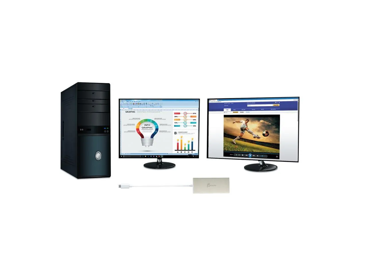 The j5create USB Type-C Dual HDMI Mini Dock allows you to connect multiple displays and devices seamlessly. With support for up to 4K resolution on dual displays, this dock enhances your workstation's efficiency.