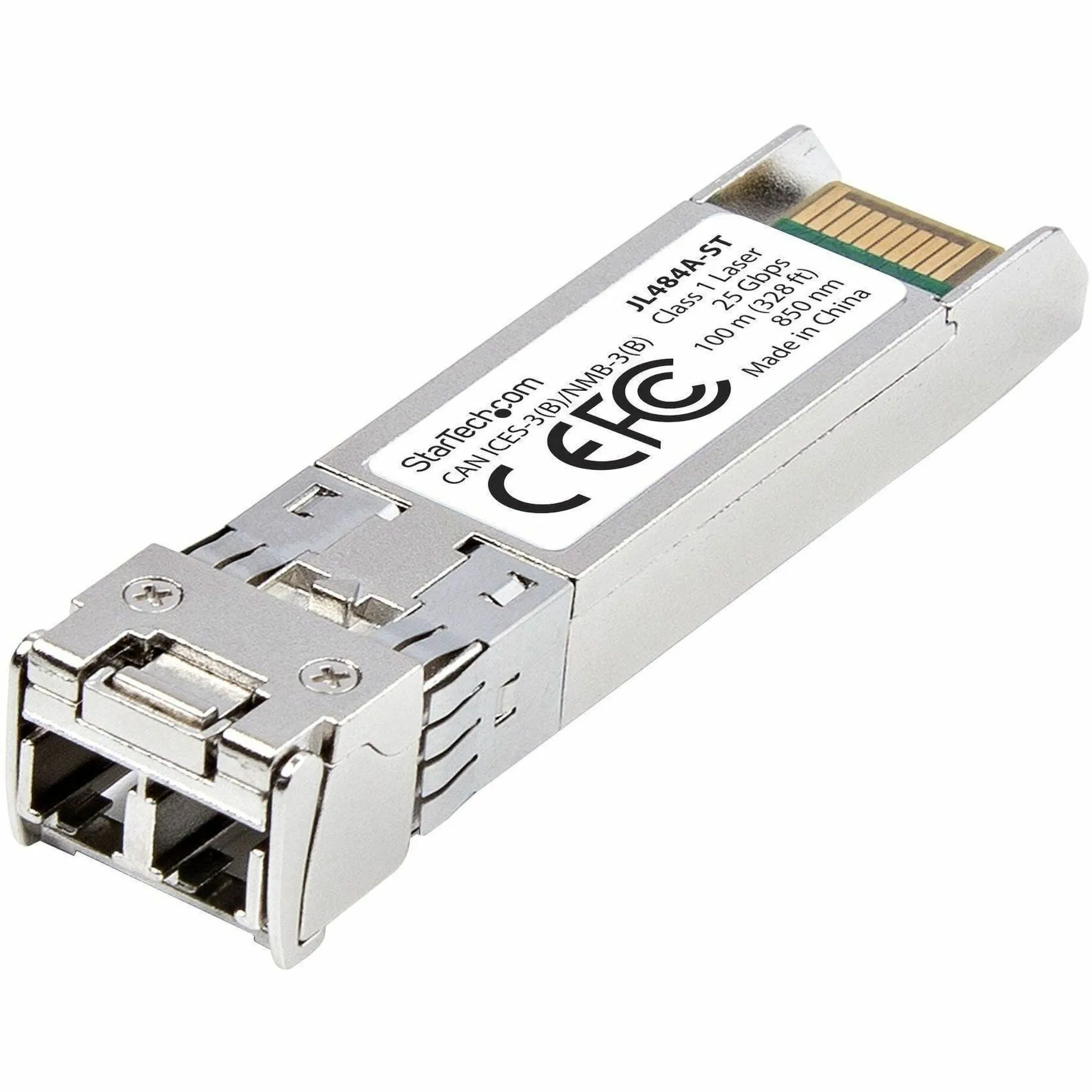 HPE-compatible SFP28 transceiver equivalent to JL484A MMF module; Tested for seamless integration with HPE switches for reliable 25Gbps connectivity up to 100m (328ft) - Maximize bandwidth for data migrations/high-capacity network storage/Multimedia upload - Technical Specs: 25GBase-SR LC SFP28/25GbE/Multimode Fiber (MMF)/LC Duplex connector/850nm/DDM/DOM - Works with MSA-compliant switches that accept uncoded fiber modules - This 25 Gigabit optical transceiver is backed for life.