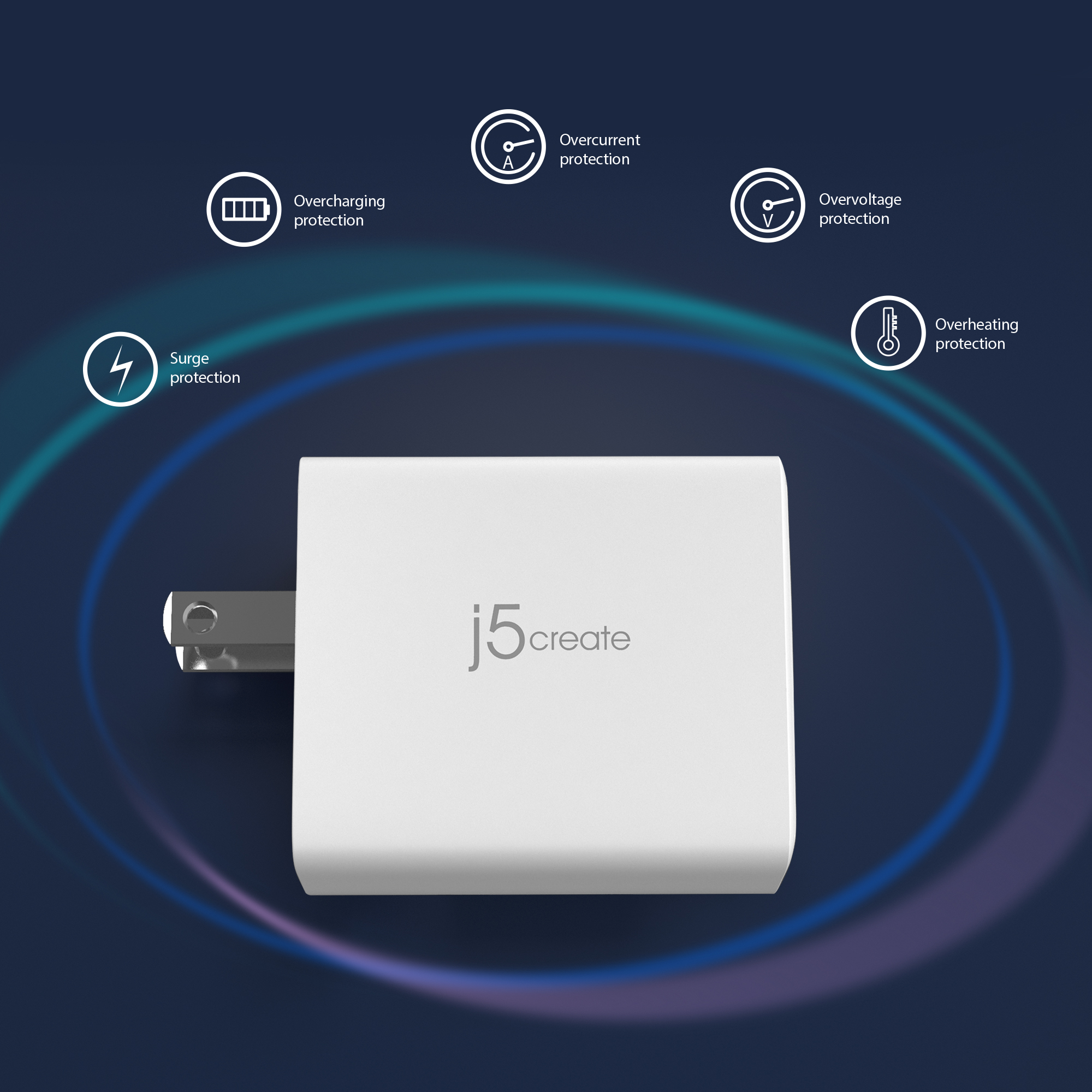 The j5create 67W GaN USB-C Charger is a powerful and compact charging solution designed to keep your devices running efficiently. With its dual-port capability, this charger allows you to charge two devices simultaneously without compromising on power delivery. The advanced GaN technology ensures heat efficiency and safety, making it an ideal travel companion.