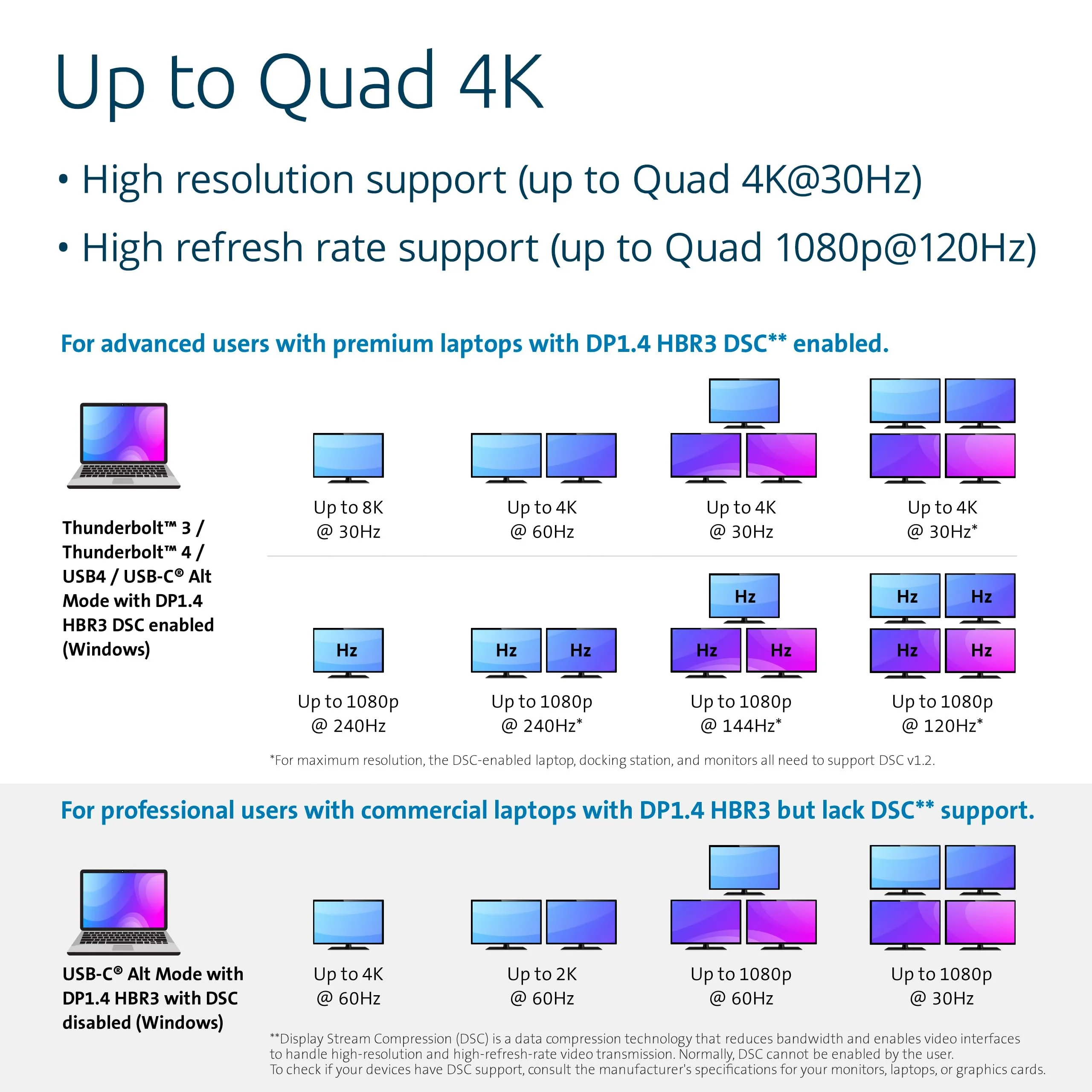 • Compatible with Thunderbolt 4, Thunderbolt 3, USB4, and USB-C Alt-Mode laptops running Windows 10 or above.