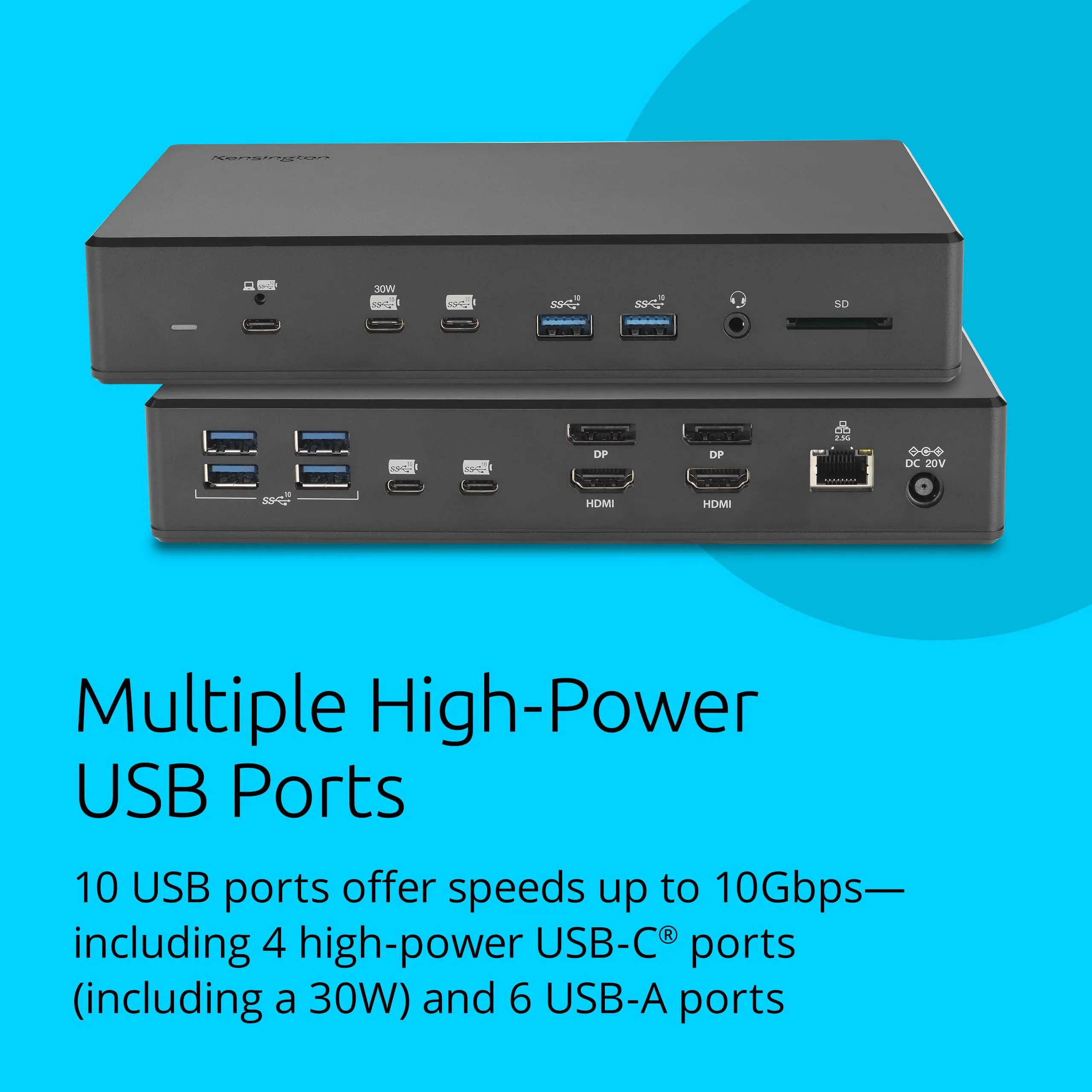 • Comprises 10 USB ports with speeds up to 10Gbps, including 4 high-power USB-C ports and 6 USB-A ports.