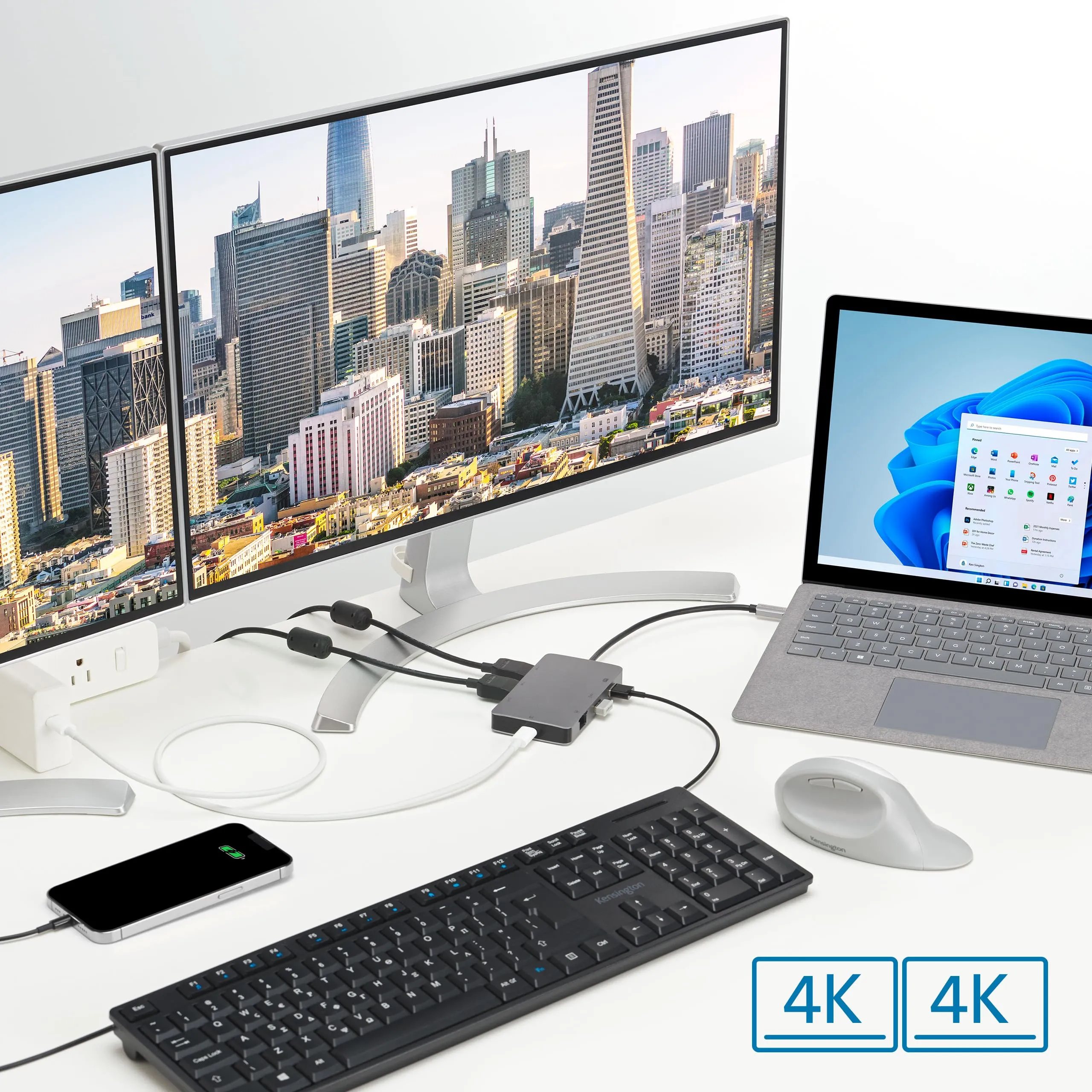 If you frequently transition between working in the office and on the go, our Portable USB-C Dock is designed for seamless productivity. It supports Dual 4K video output, providing stunning visuals for up to two external displays.