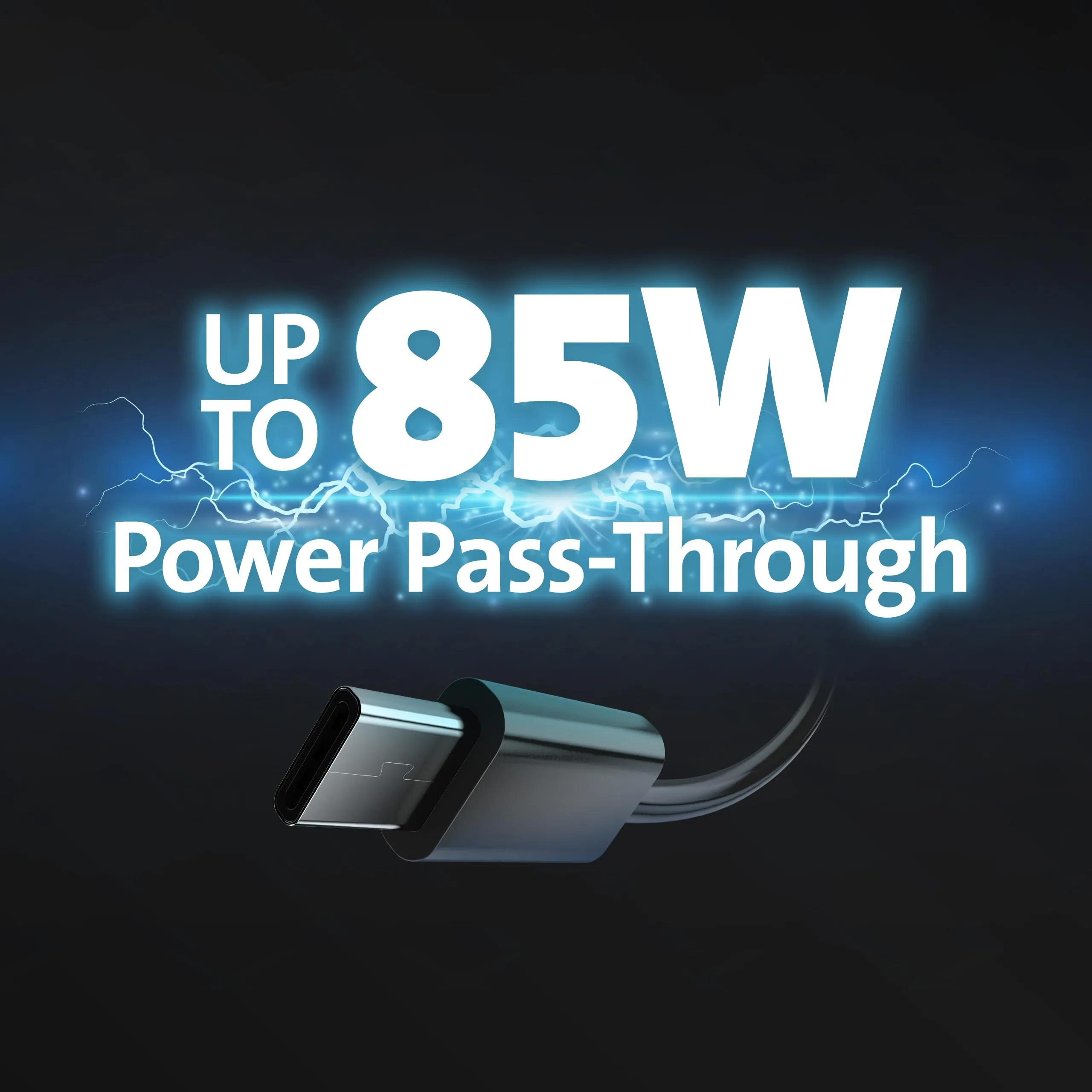 • Up to 85W power pass-through for device charging