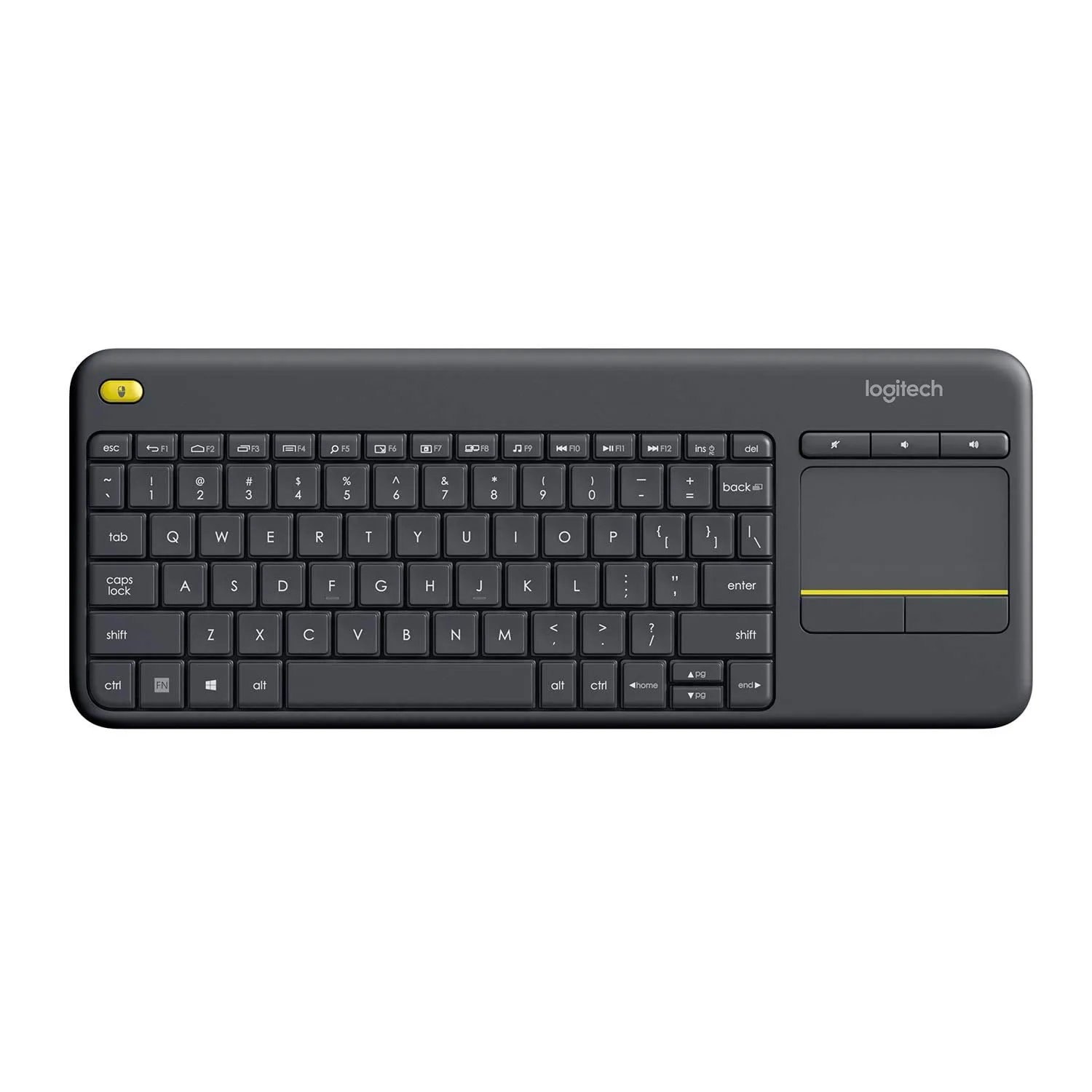 The Logitech K400 Plus is a versatile wireless keyboard that combines comfortable typing with a built-in touchpad. Perfect for use with PCs and smart TVs, this keyboard provides a seamless experience for browsing and media control from your couch. Its slim design makes it easy to use from any angle, while the included tray helps keep your setup organized.