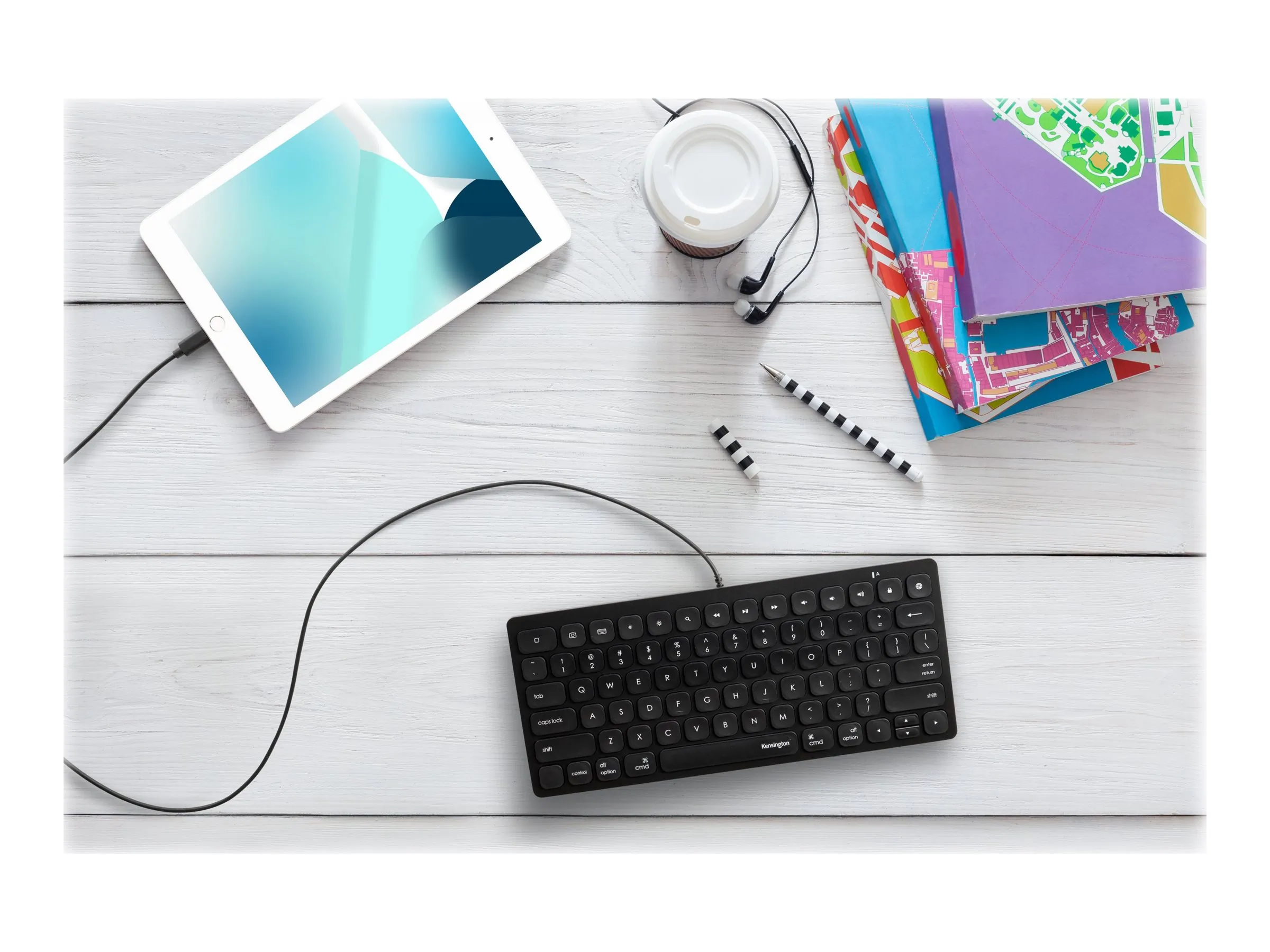 Full-sized, responsive scissor keys offer a comfortable and precise typing experience. Fourteen shortcut keys allow you to quickly navigate through common iOS keyboard commands. This durable, lightweight, and compact keyboard is ideal for daily classroom use. Caps lock indicator provides a visual signal for more efficient typing. Plug-and-play wired Apple Lightning connection delivers reliable performance without the need for software or batteries. MFi Certified so you know itrs safe to use with Apple iPad and iPhone. Additionally, the Simple Solutions Wired Compact Keyboard with Lightning Connector exceeds the privacy requirements set out by the Partnership for Assessment of Readiness for College and Careers and the Smarter Balanced Assessment Consortium. A two-year warranty means you can rest assured knowing yourre covered by Kensington.