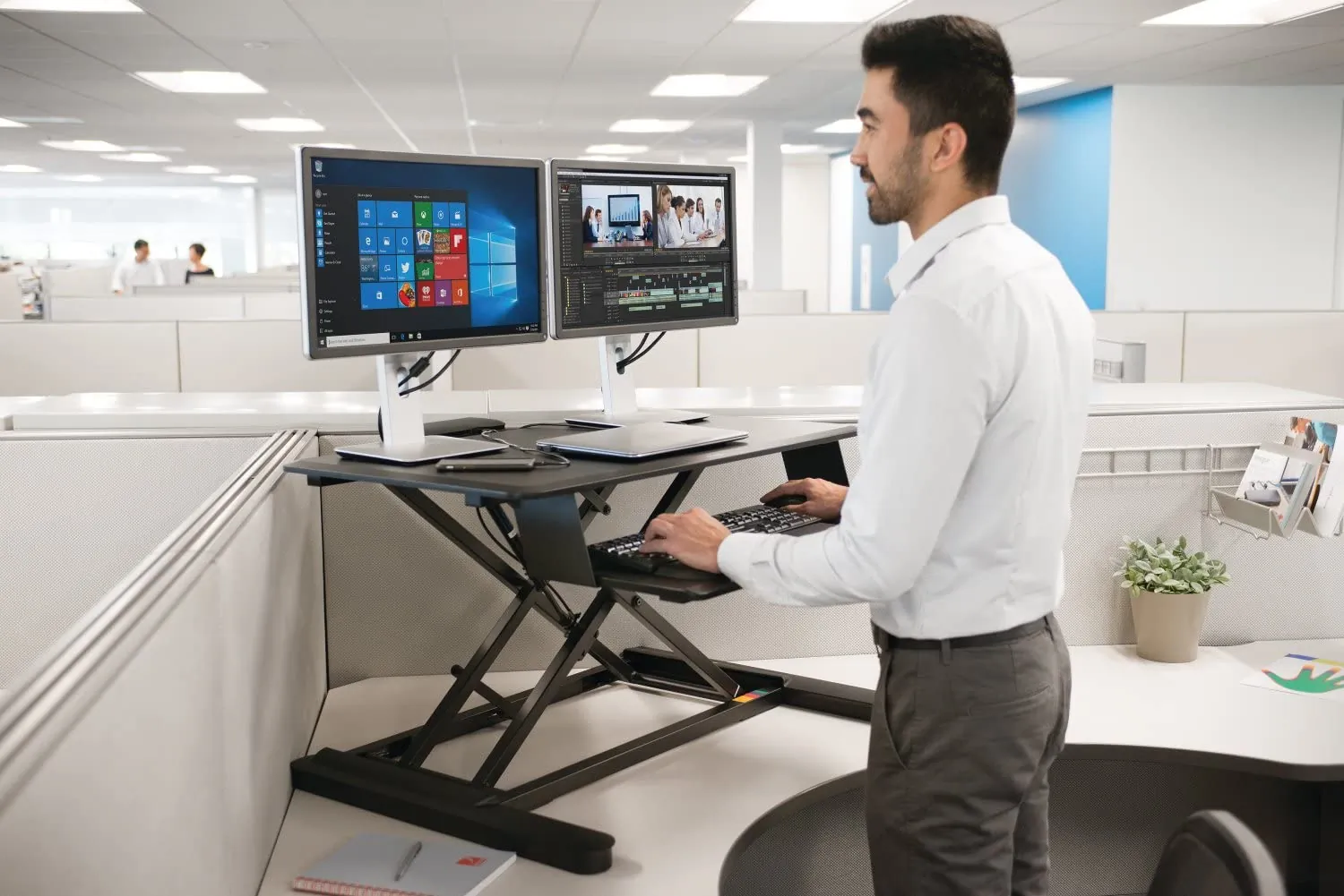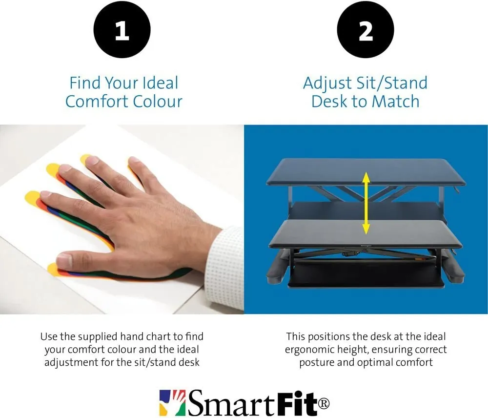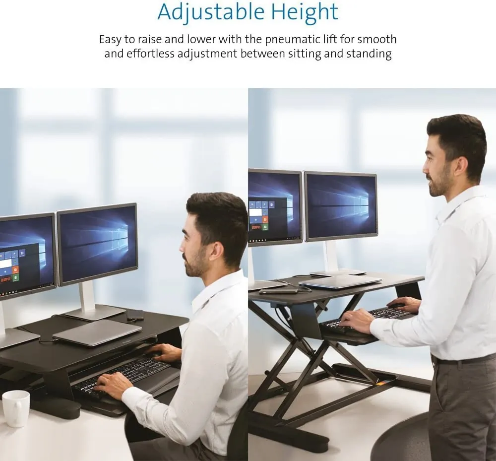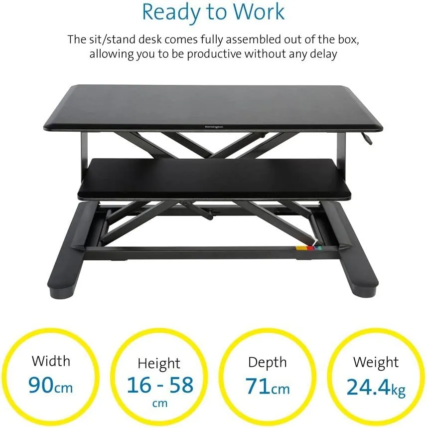 For more than 35 years, innovation, quality, and trust have made Kensington The Professionals' Choice in desktop productivity solutions. Incorporating Kensington's patented technology to ensure proper fit, the Smart Fit Sit/Stand Desk provides an efficient and safe way to convert your desk into a healthy sit-stand workstation using a convenient desk-on-desk design. Strong and stable at any height, while using a pneumatic lift to effortlessly raise and lower your workspace within a space-saving footprint, the Kensington Smart Fit Sit/Stand Desk delivers optimal productivity and ergonomic support.
