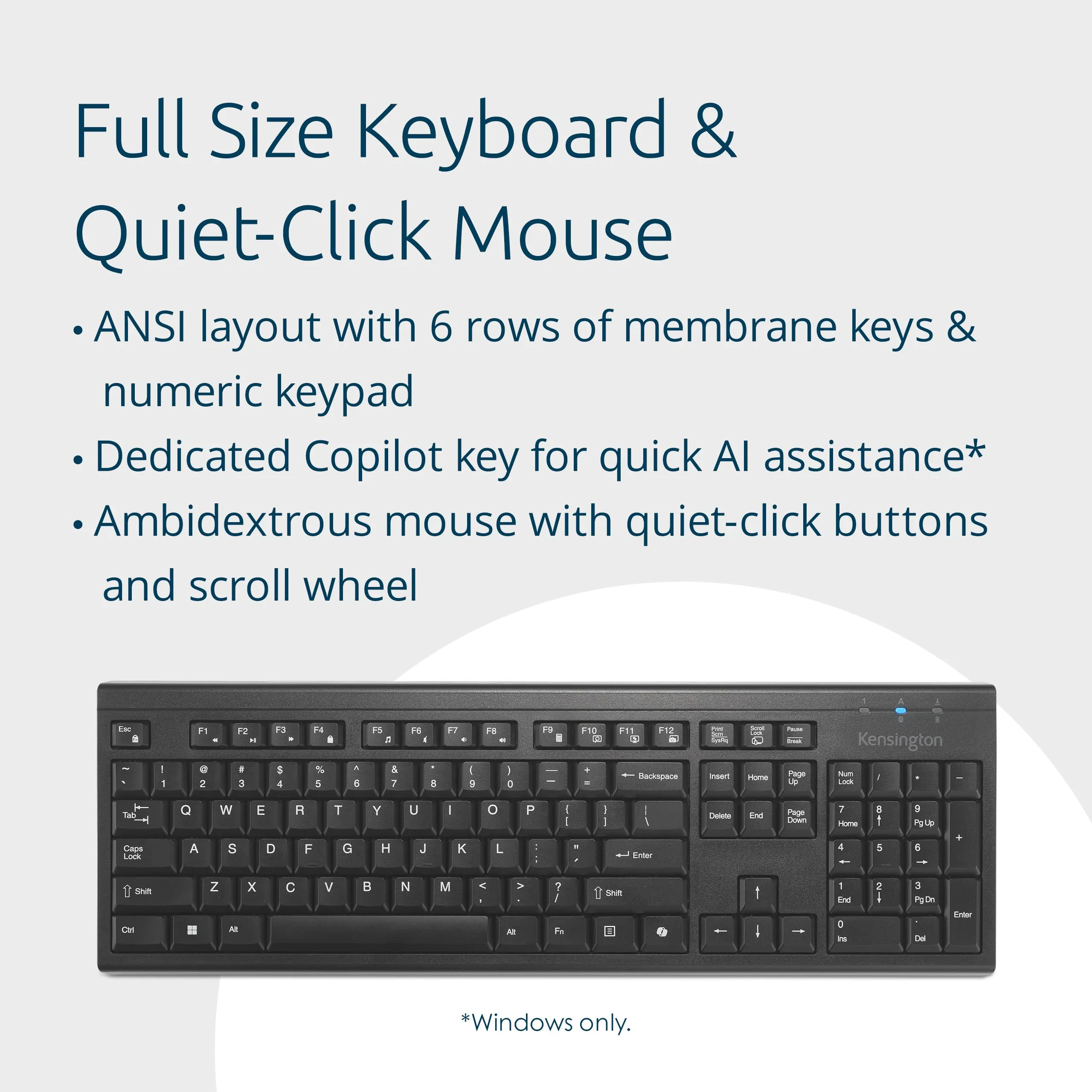• Full-size keyboard layout with dedicated Copilot key