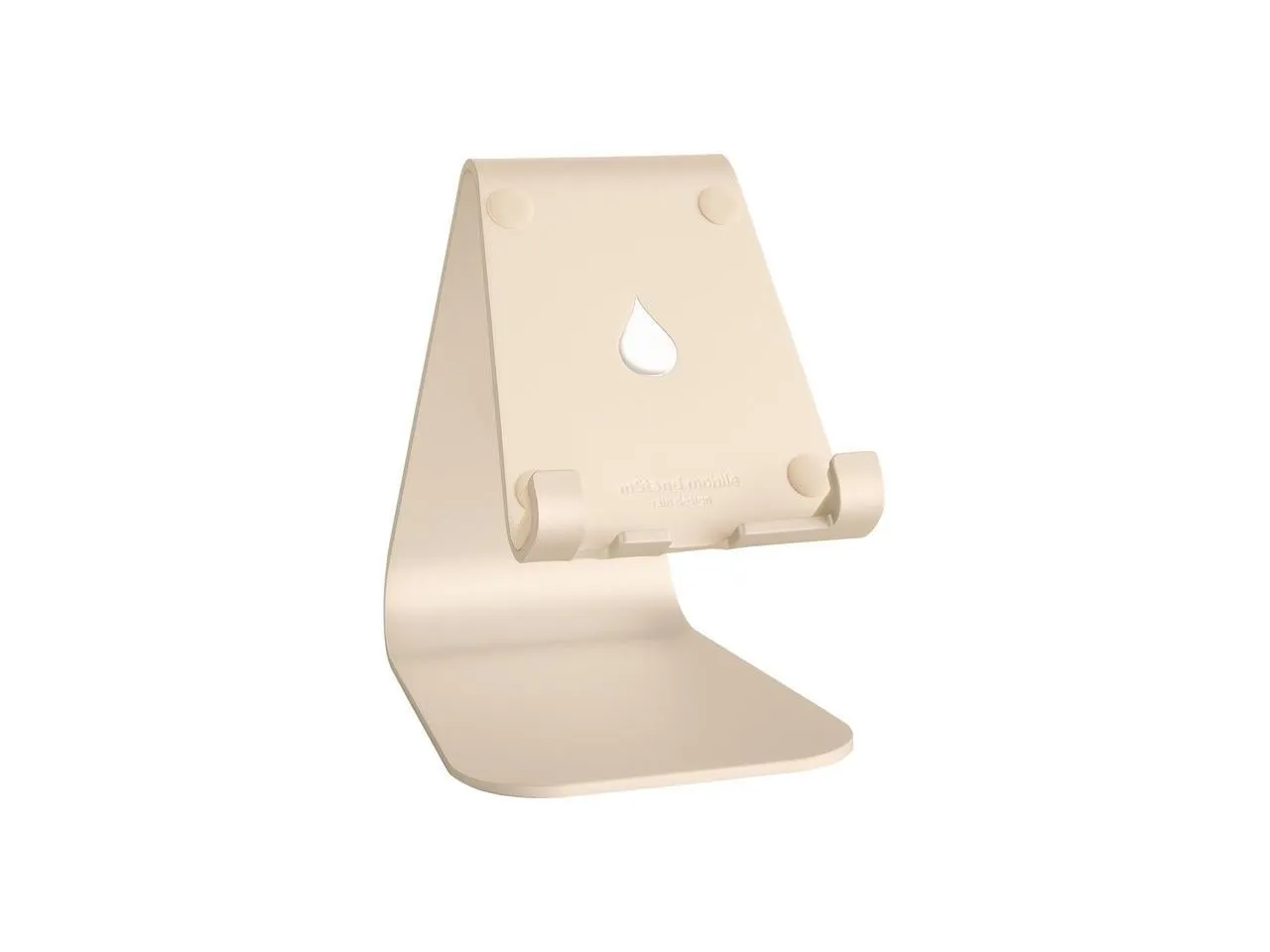 The MStand Mobile Stand in Gold is designed to provide a stable and stylish way to hold your iPhone and other smartphones. With its sleek and modern design, it complements any workspace or home environment.