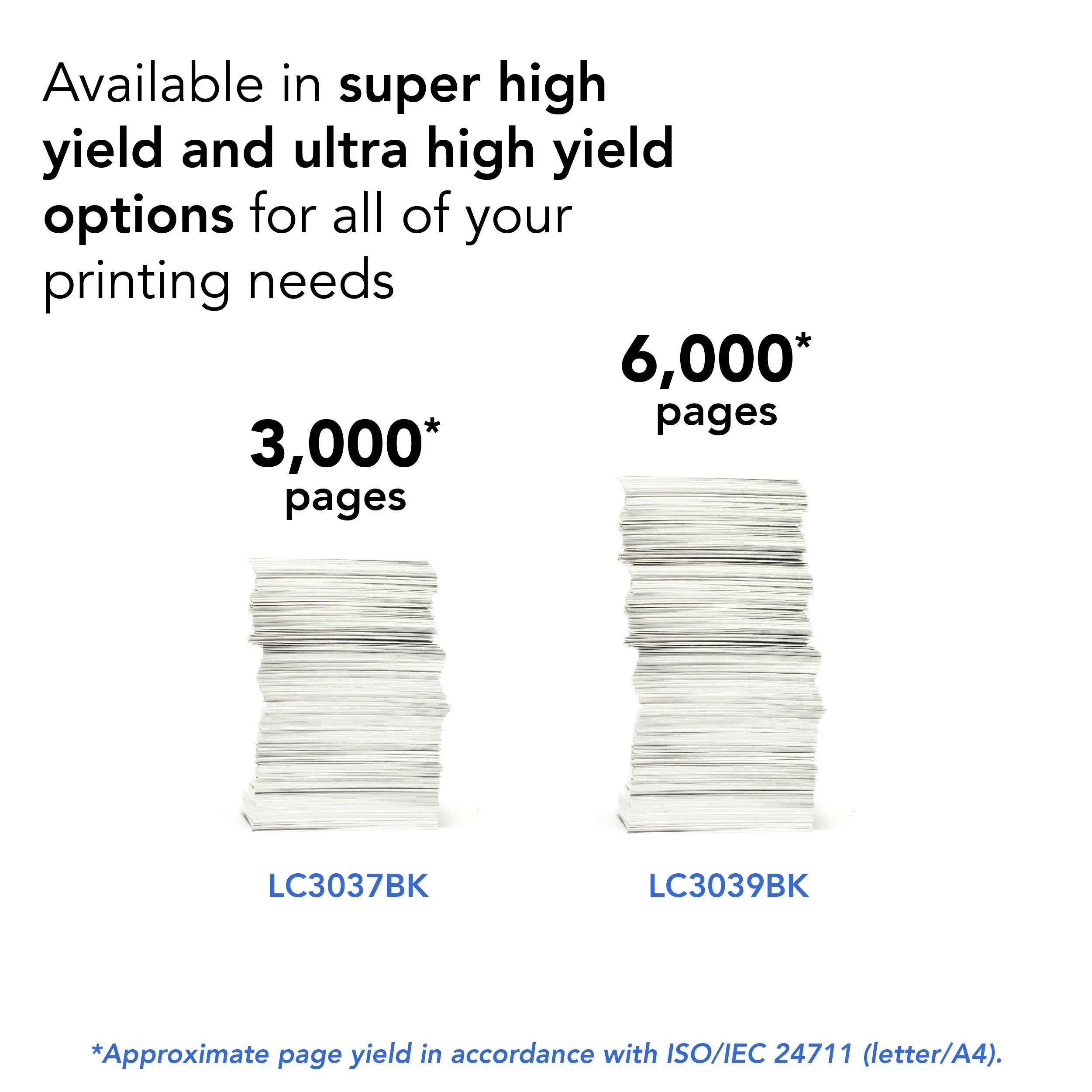 Brother Genuine LC3039BK Single Pack Ultra High-yield Black INKvestment Tank Cartridges deliver consistent, professional print quality and ultra convenience with an up to 6,000-page yield.* Brother Genuine ink is intelligently engineered to work seamlessly with your Brother INKvestment Tank inkjet printer to consistently produce sharp prints that withstand the test of time. Brother Genuine LC3039BK is for use with Brother INKvestment Tank affordable inkjet all-in-one printers MFC-J5845DW, MFC-J5845DW XL, MFC-J5945DW, MFC-J6545DW, MFCJ6545DW XL and MFC-J6945DW with Brother tank technology. Brother offers an environmentally responsible way for customers to dispose of Brother Genuine cartridges at end of life. Visit www.brother-usa.com/environment for more information.