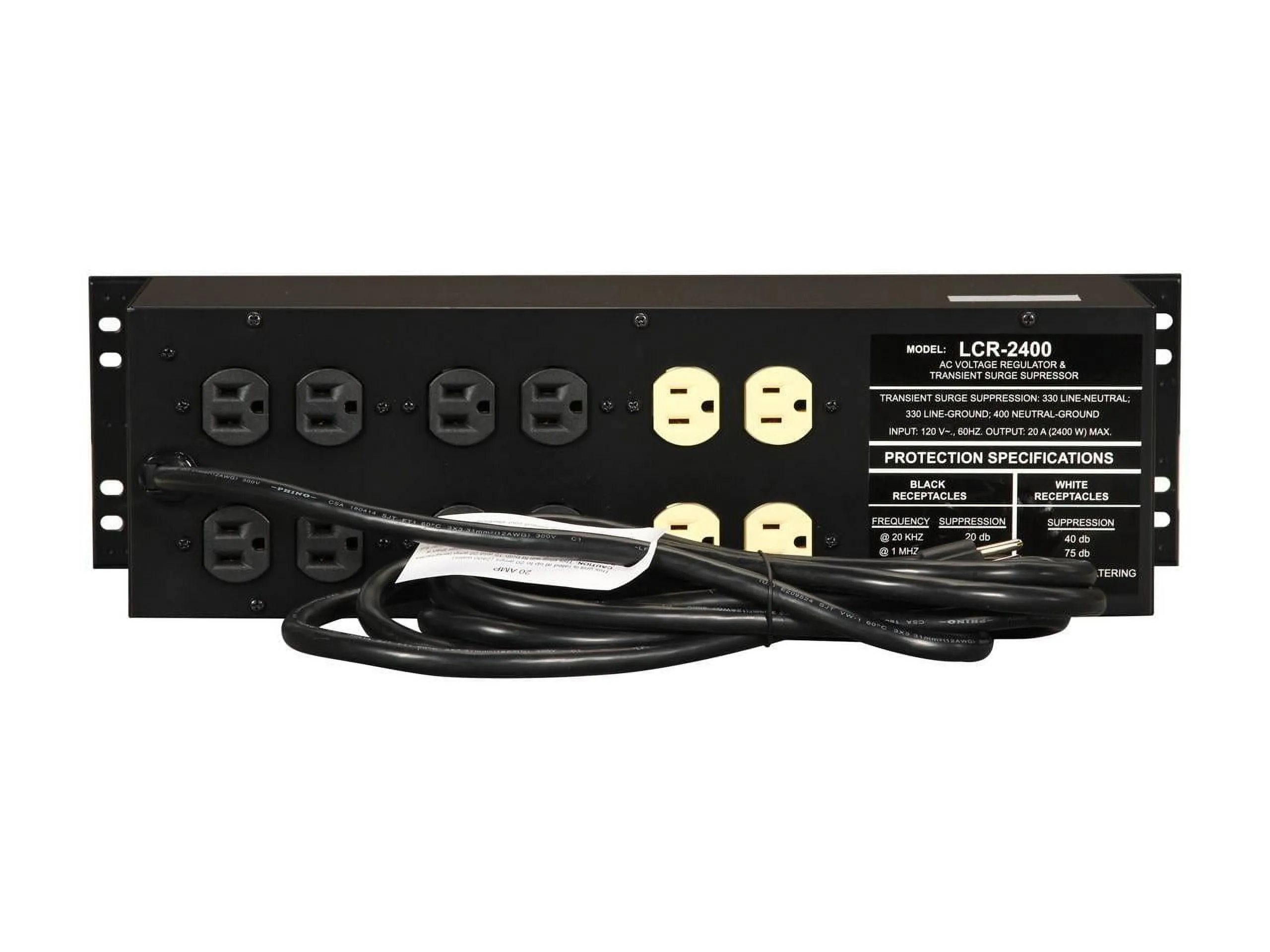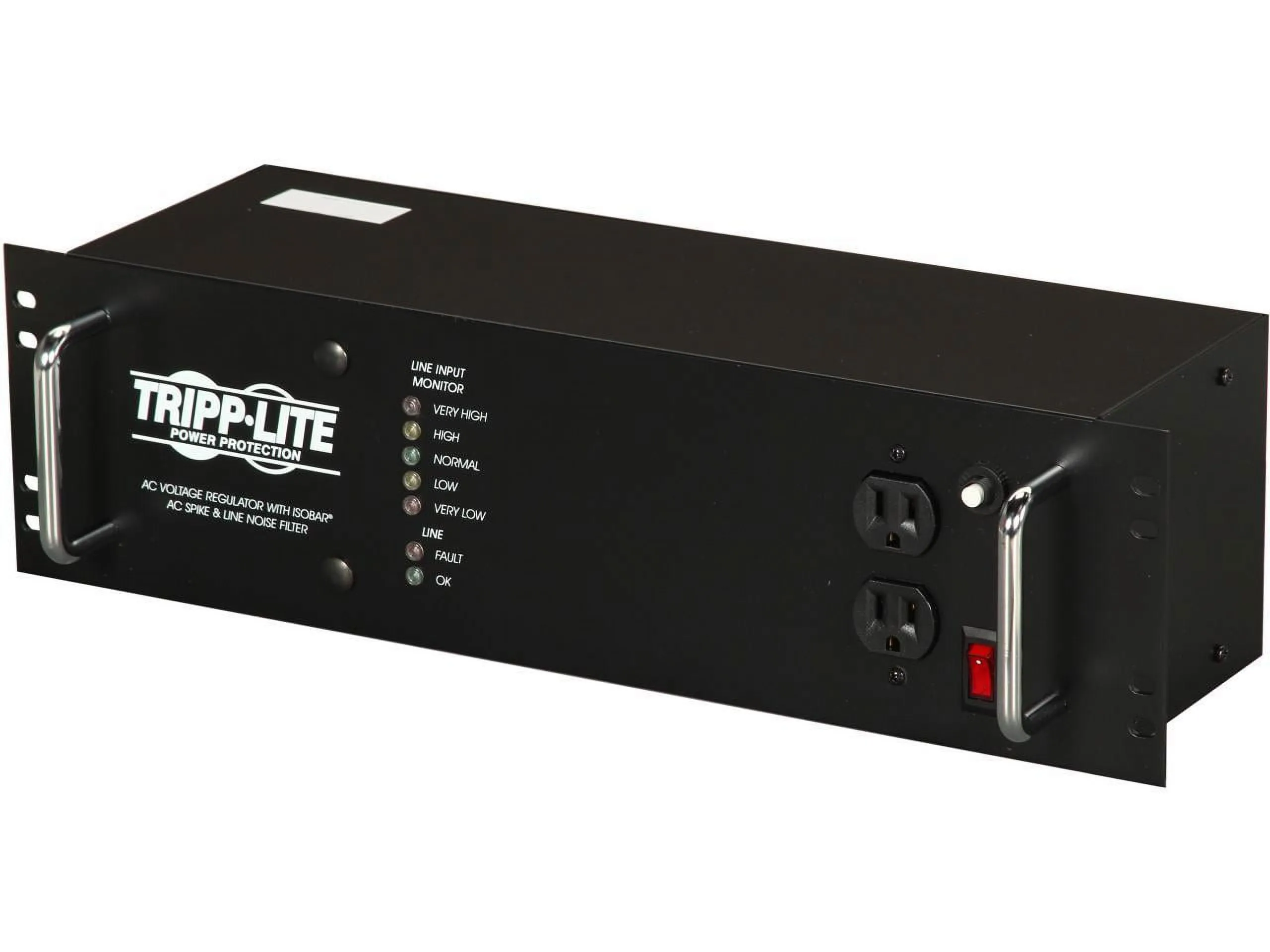 - Maintains usable 120V (10 percent /-12percent) nominal output over an input range of 89 to 147V - Protects sensitive electronics, computer accessories and home theater equipment from power-related damage and performance problems - Extends the useful life of connected equipment by providing optimum voltage conditions for enhanced efficiency and cooler internal operating temperatures - Convenient 19 inch rackmount format installs in any 2 or 4 post equipment rack using 3 rack spaces (3U) - Three levels of voltage stabilization offer targeted response to overvoltages, undervoltages and severe brownouts - Input voltages over 128V are reduced by 9.6percent - Input voltages between 103 and 112V are boosted by 8.9 percent - Input voltages below 102 V are boosted by 18.8 percent - 2400 watts output power rating supports 120V loads up to 20 amps - Network grade AC surge suppression - Premium EMI/RFI noise filtering prevents equipment interaction, system interference, lockups and other power-related audio and video artifacts - 7 diagnostic LEDs indicate input voltage levels, surge suppression and line status - 14 protected NEMA 5-15R outlets - Two built-in isolated filter banks prevent noise interaction between connected devices - Black color outlets offer basic filtering, white color outlets offer enhanced filtering for the most sensitive connected devices - 12 foot AC power cord with NEMA5-15P input plug Unit Dimensions (HWD/in) - 5.25 x 19 x 7.75 Unit Dimensions (HWD/cm) - 13.3 x 48.3 x 19.7 Form factors supported - Standard 19 inch rack mount format using 3 rack spaces (3U) Material of construction - Steel