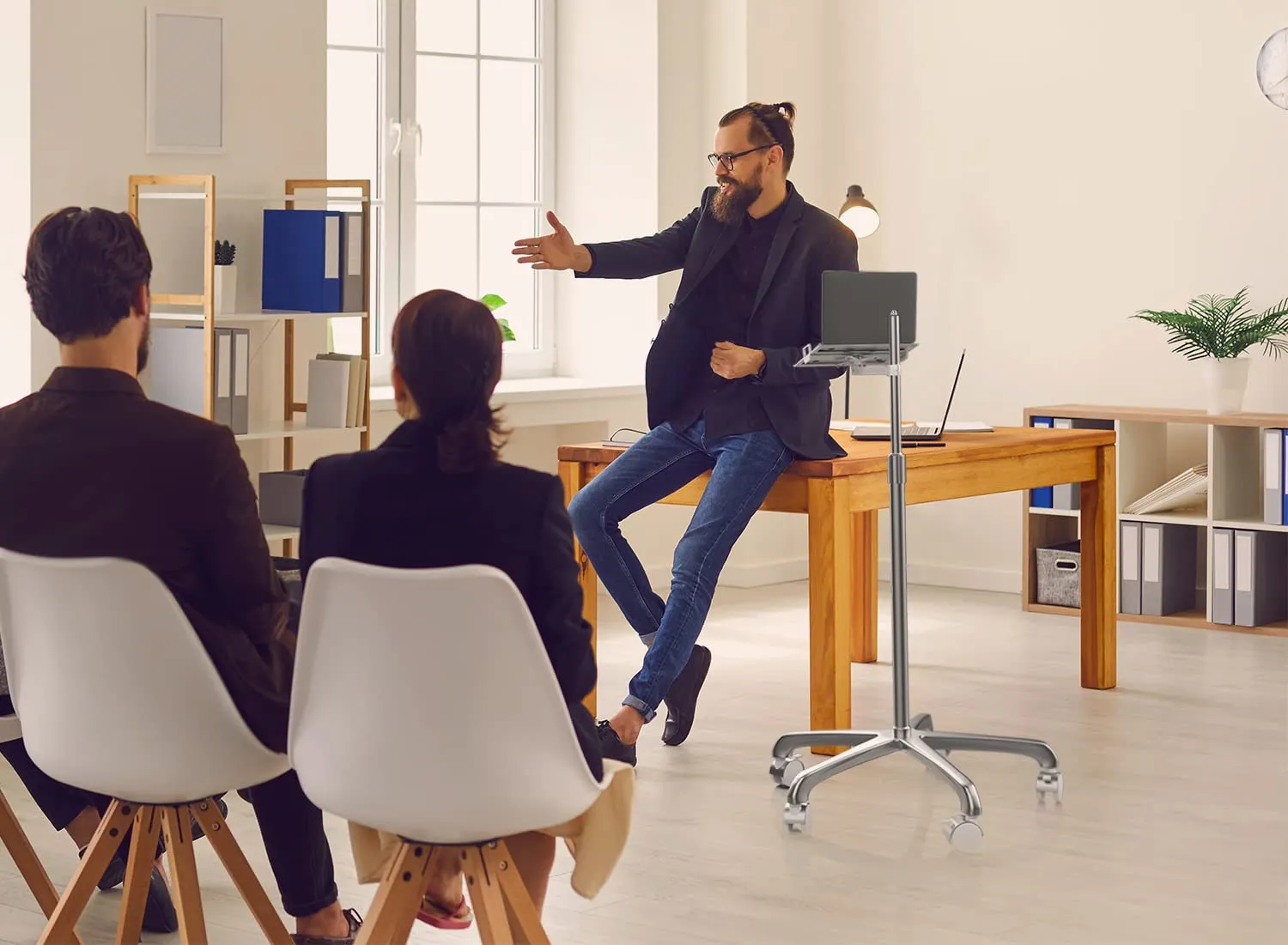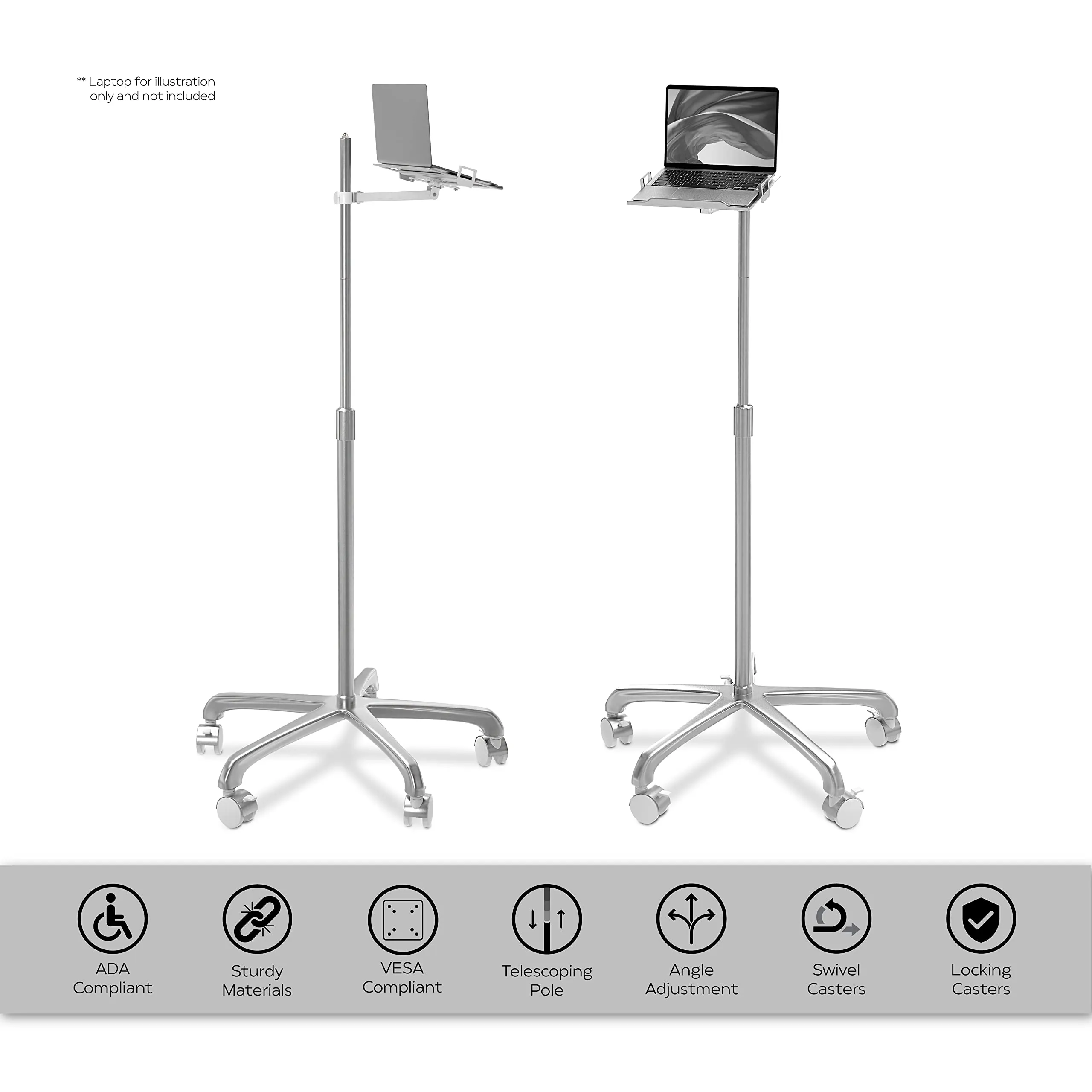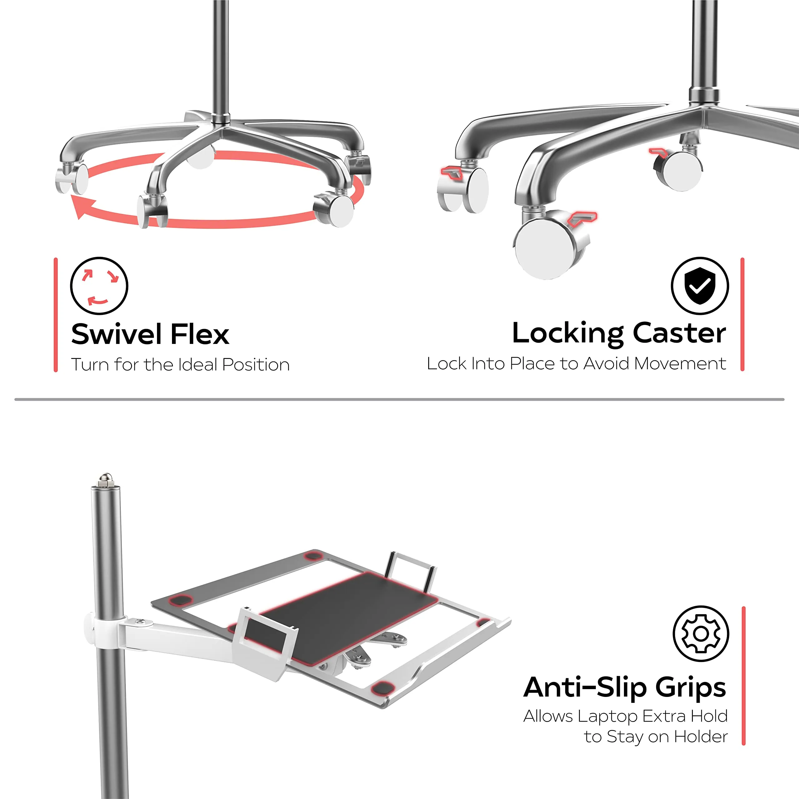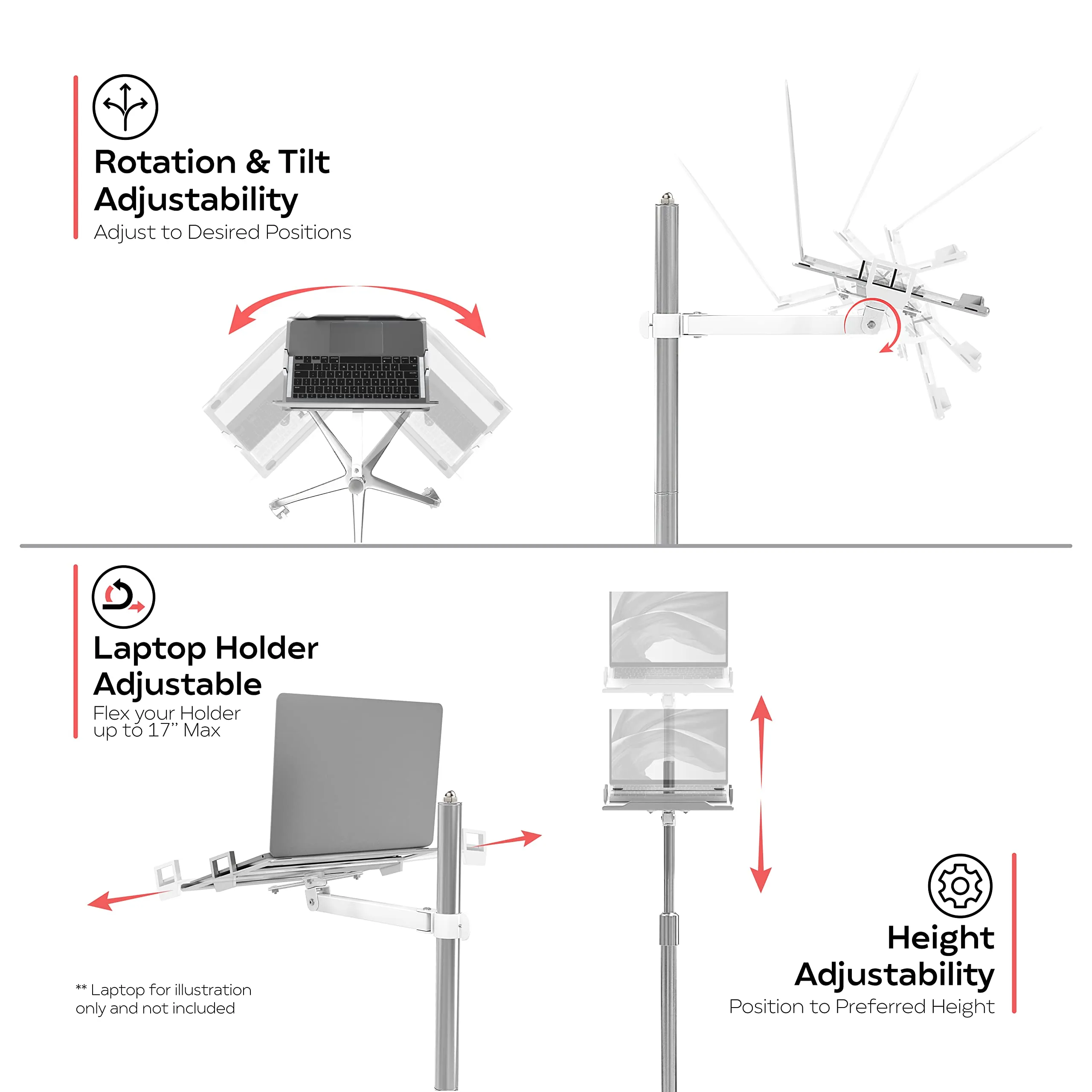 The Adjustable Laptop Floor Stand is designed for comfort and convenience, providing a height-adjustable solution for laptop users. Perfect for home office environments or mobile working setups, this stand offers stability and portability.