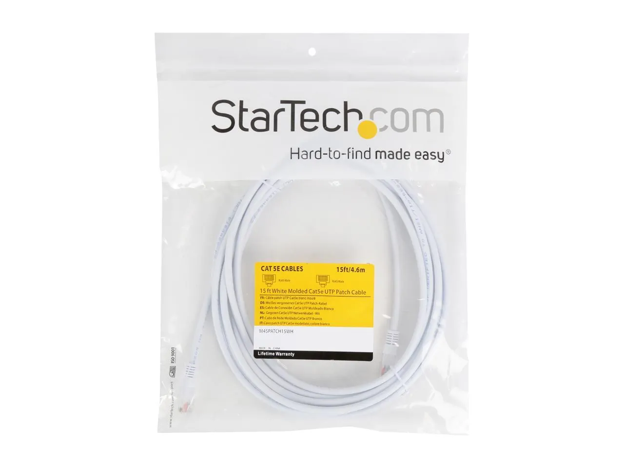 The StarTech.com 15 ft. Cat 5E UTP Patch Cable in white is designed for high-performance networking needs. This durable cable provides a reliable connection for your devices with excellent throughput, making it perfect for both home and office use.