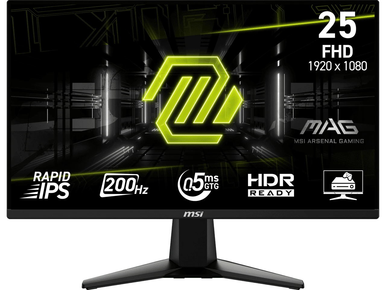 Experience unparalleled gaming visuals with the MAG 255F E20 Gaming Monitor. Featuring a sleek metallic black design, this 24.5-inch screen boasts a rapid IPS panel that delivers stunning 1920 x 1080 Full HD resolution. With a remarkable 200Hz refresh rate, enjoy ultra-smooth gameplay, while Adaptive Sync technology ensures tear-free visuals. The monitor also supports HDR content for enhanced brightness and contrast, and comes with a non-glare coating to minimize distractions. Plus, easily adjust the tilt for optimal viewing comfort.