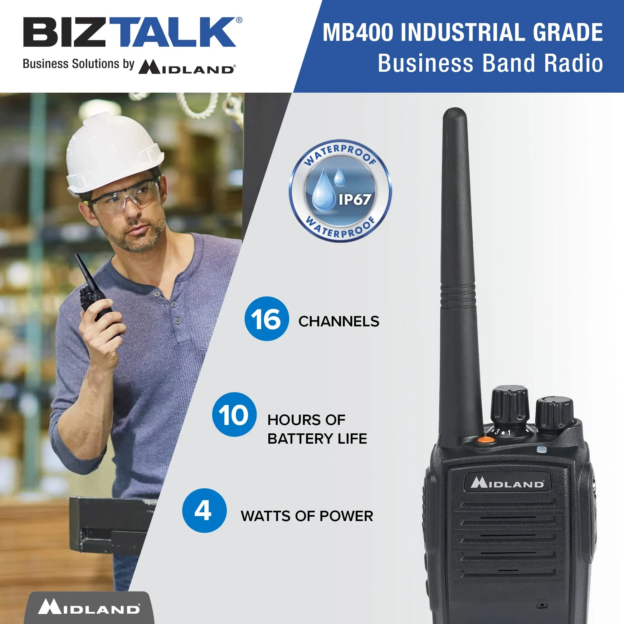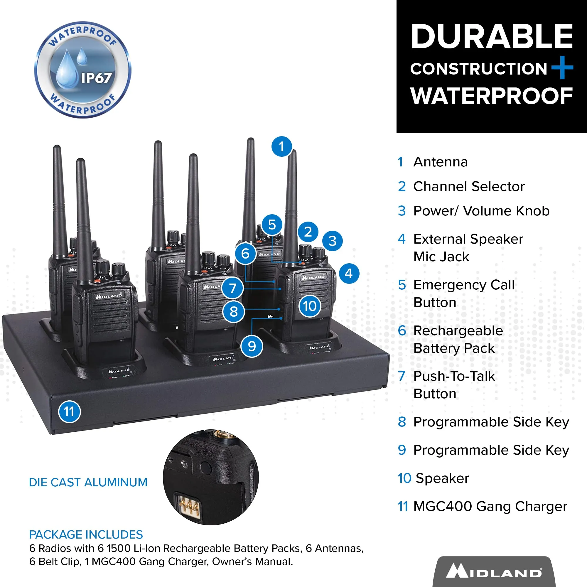 This BIZTALK BR400 bundle includes six 2-way radios and one MGC400 gang charger. Perfect for team communications in various environments.