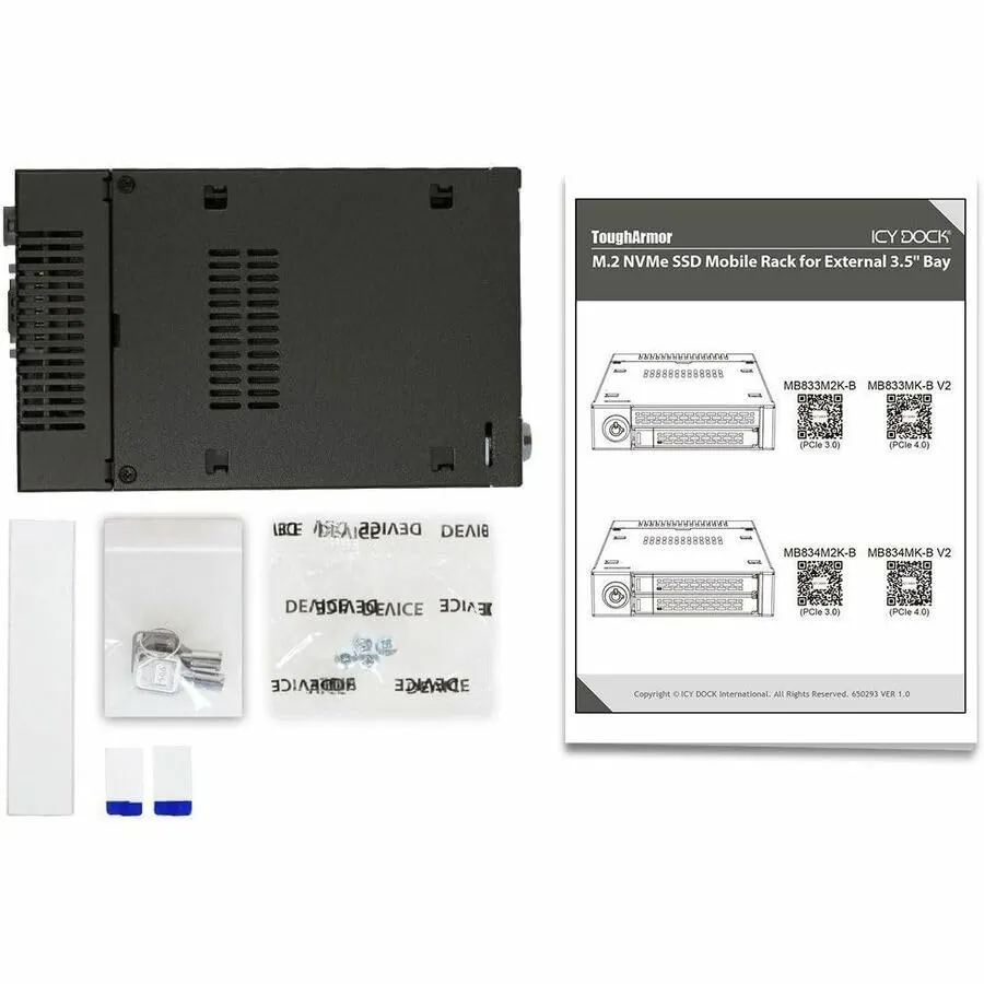 The ICY DOCK ToughArmor M.2 NVMe SSD Mobile Rack Enclosure is designed to seamlessly integrate with your PCIe 4.0 interface, offering a reliable solution for high-speed data access and storage expansion. This rugged enclosure supports M.2 NVMe SSDs, providing excellent heat dissipation and protection for your drives.