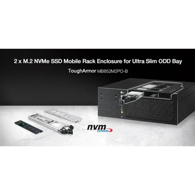 The ICY DOCK Ultra Slim 2xM.2 NVMe SSD Mobile Rack is designed to fit into a standard 9.5mm ODD bay, allowing you to easily swap out or upgrade your M.2 NVMe SSDs without opening your computer case. This mobile rack is perfect for users looking for quick access to their SSDs for data transfer, backup, or redundancy.