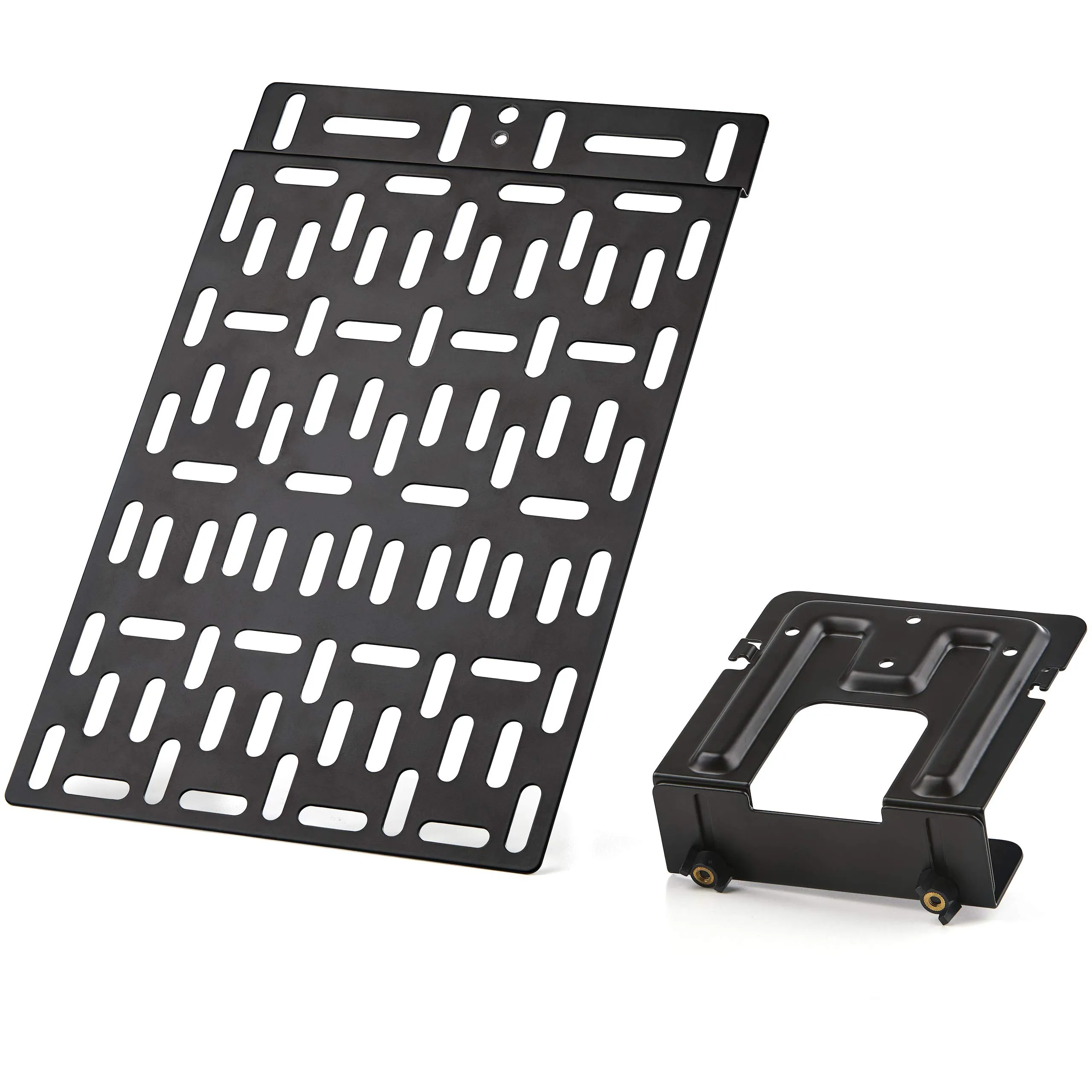 The MDBOXMNT Heavy Duty Universal TV Accessory Mount is designed for efficient and practical use behind your television. This versatile mount supports accessories weighing up to 11lbs and features a robust 13.4"x8.8" powder-coated steel plate. The mount can be securely attached to the wall or directly to your TV via its VESA mounting holes.