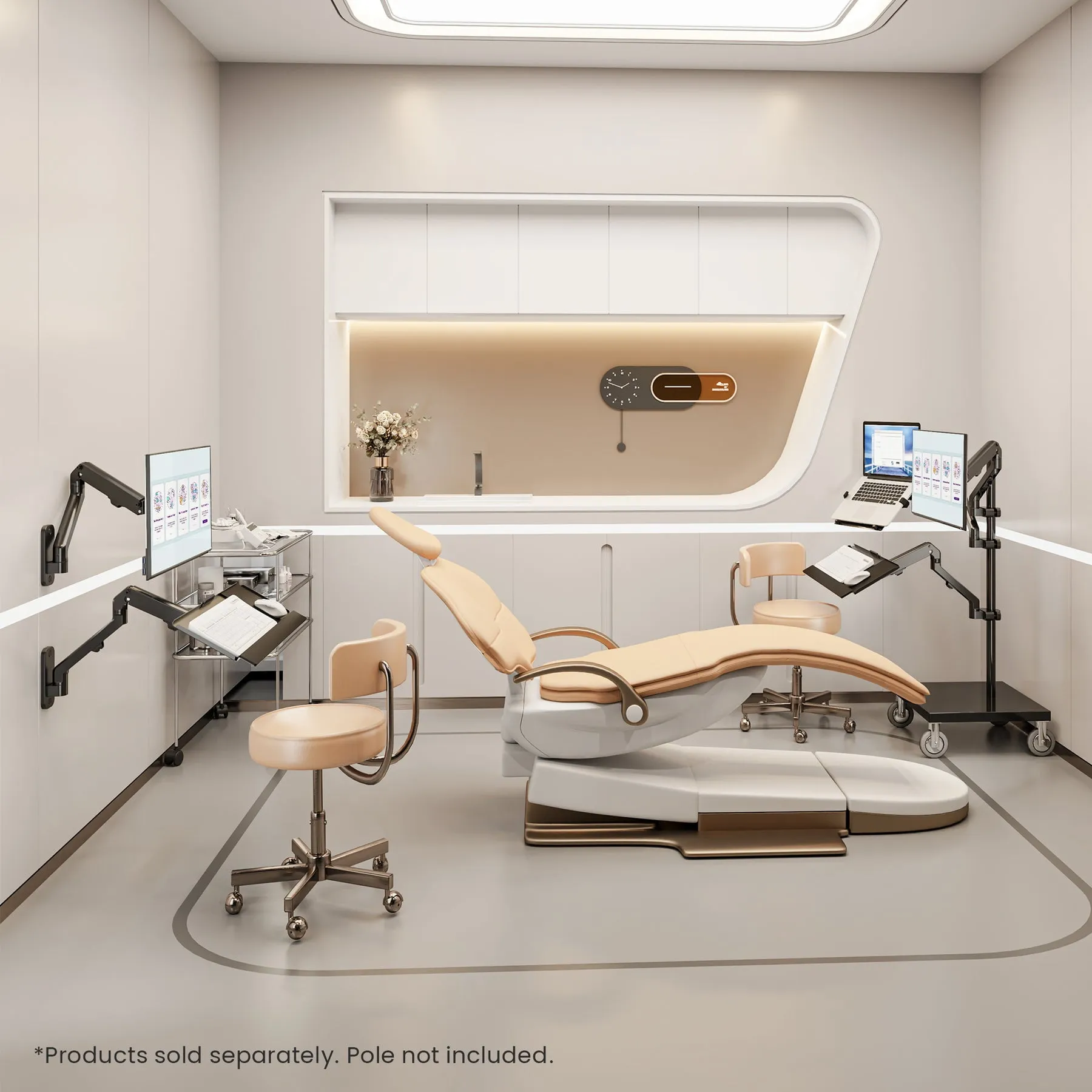 The integrated cable management system helps reduce clutter by keeping cords neatly arranged along the arm. Whether you're looking for a solution to save desk space or enhance a commercial environment, this versatile arm can also be converted into a monitor arm by removing the laptop tray and attaching a monitor instead.
