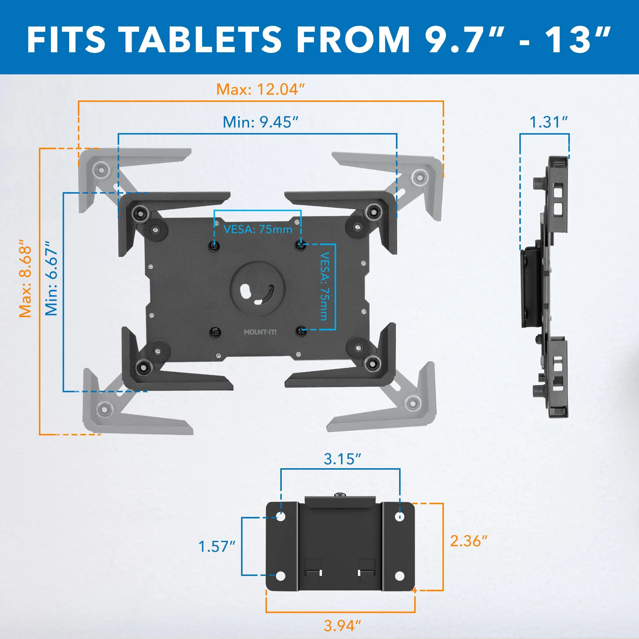 This universal tablet wall mount provides a sleek and secure solution to seamlessly integrate your tablet or iPad into your space. The universal enclosure accommodates most 9.7" to 13" tablets and is designed to deter theft, making it an ideal choice for retail, hotels, restaurants, libraries, or offices.