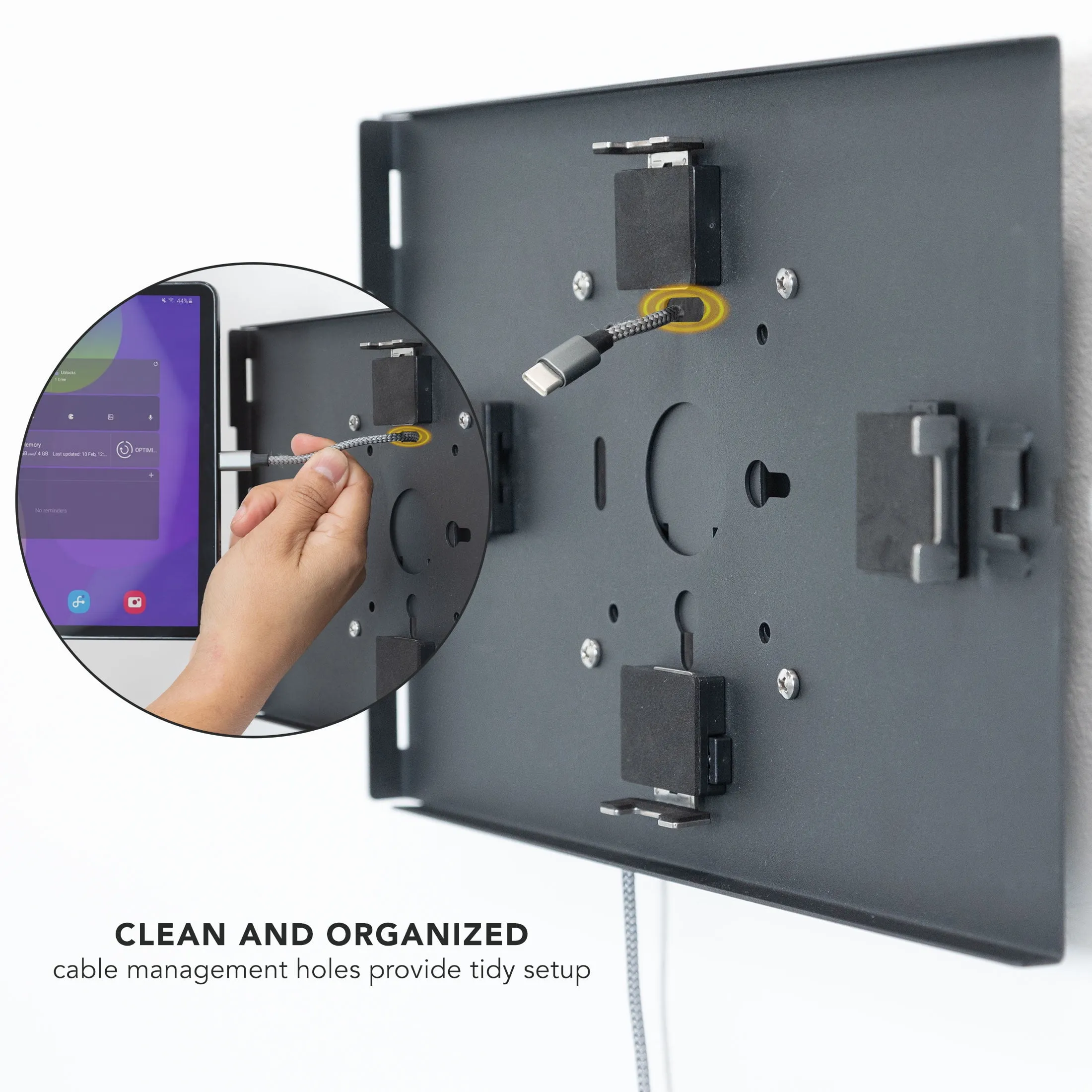 Enhance the security and accessibility of your Samsung tablet with our Lockable Tablet Wall Mount. This stylish and durable mount is crafted specifically for high-traffic areas like retail stores, trade show booths, and educational institutions where safety is paramount.