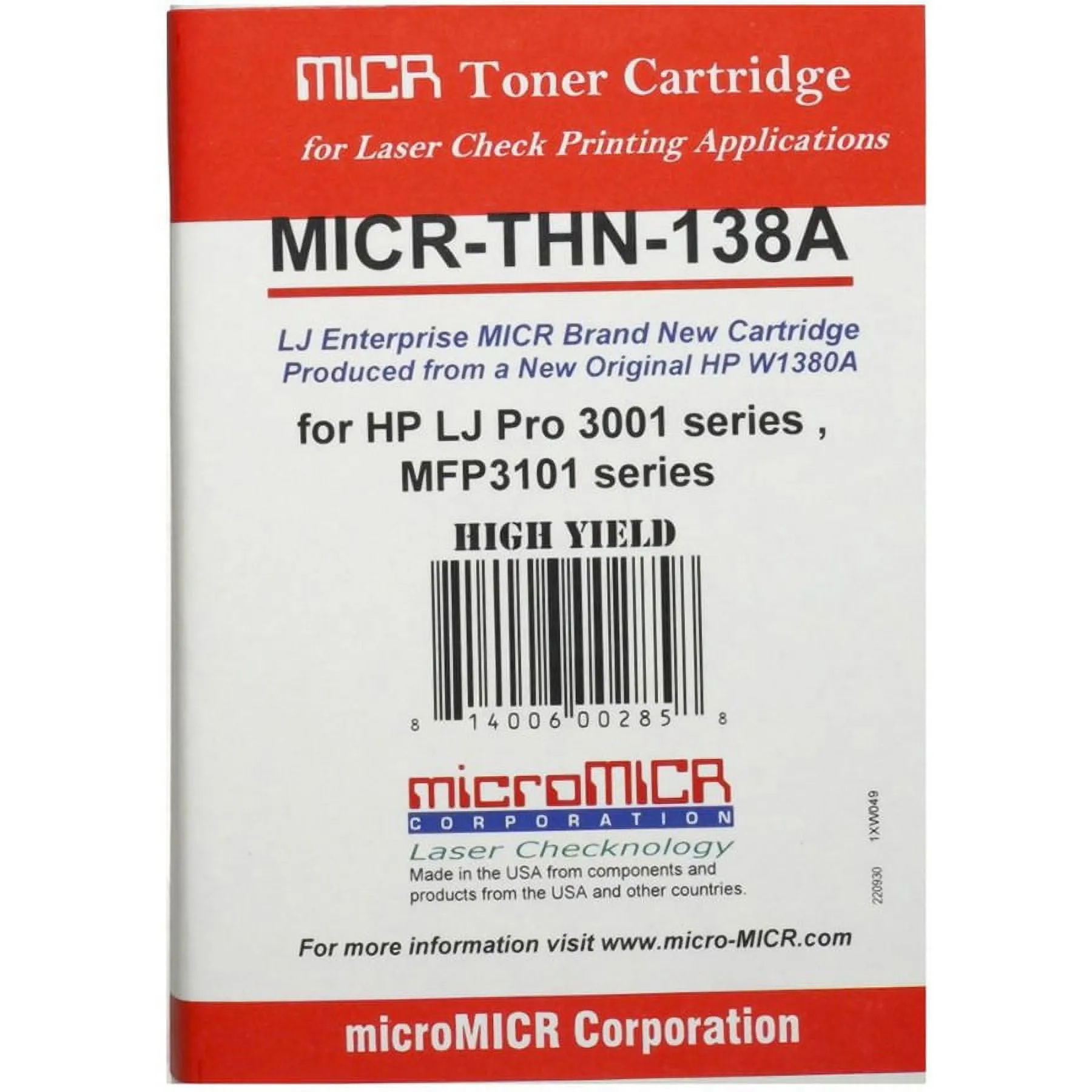 The HP W1380A Compatible MICR Toner Cartridge is specifically designed to deliver exceptional print quality with the Magnetic Ink Character Recognition (MICR) technology necessary for processing checks and other financial documents. This cartridge ensures that your prints meet industry standards for banking and finance.