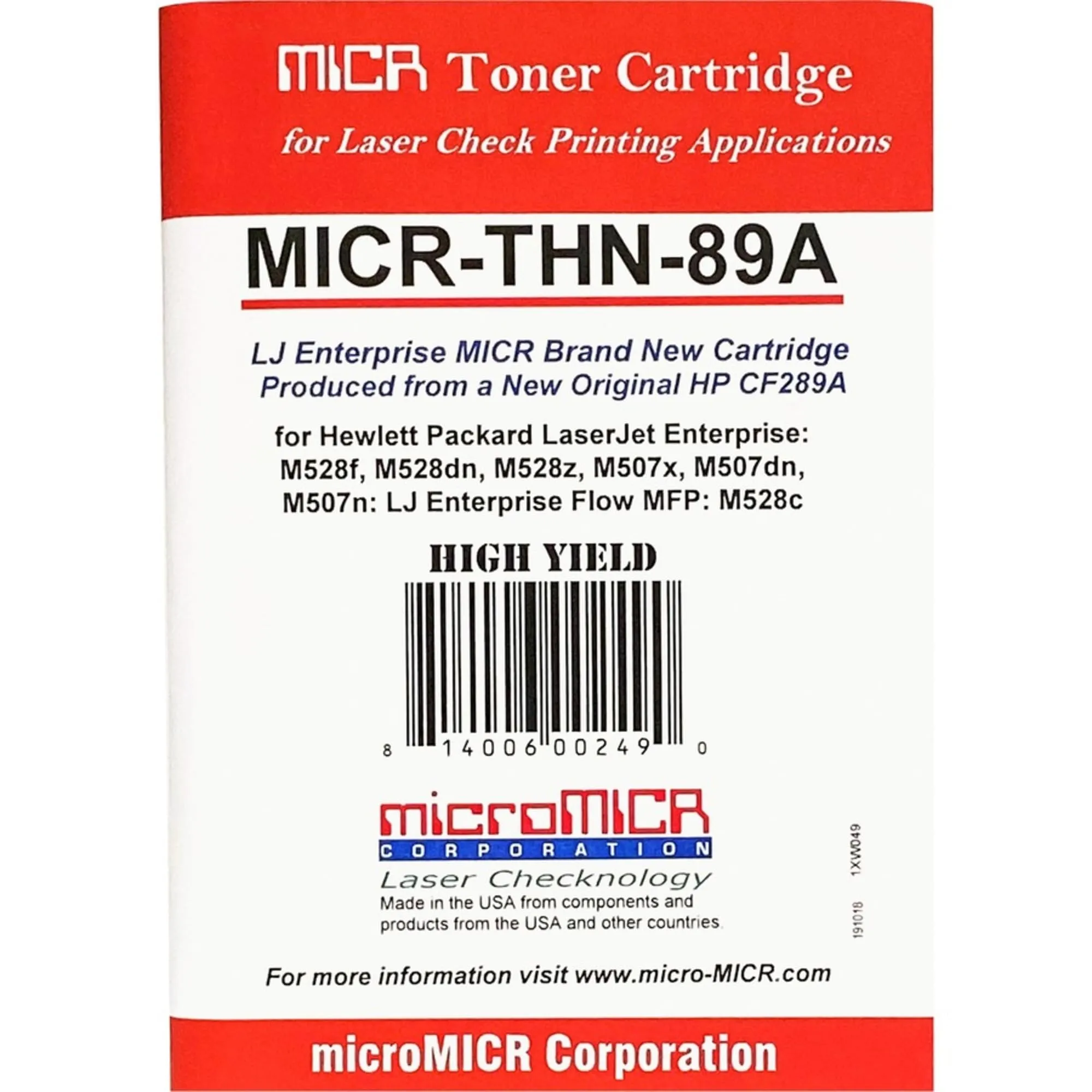 The MICRO MICR Brand HP CF289A toner cartridge is specifically designed for use in the HP M507 and M528 printers. It delivers high-quality MICR output with an estimated yield of 5,000 pages, ensuring reliable performance for all your printing needs.