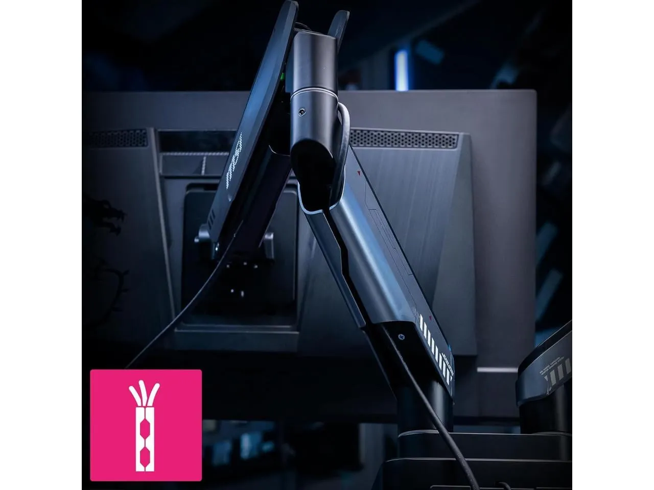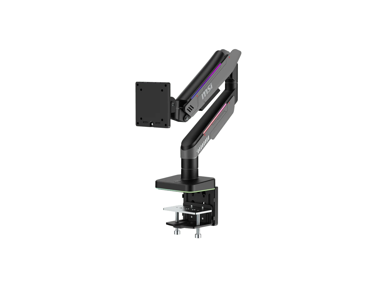 The MSI MPG MT201R V2 is a premium RGB monitor arm designed to support screens ranging from 17 to 49 inches, with a maximum weight capacity of 44 lbs. This versatile and robust monitor stand features VESA compatibility, allowing you to mount your monitor securely.