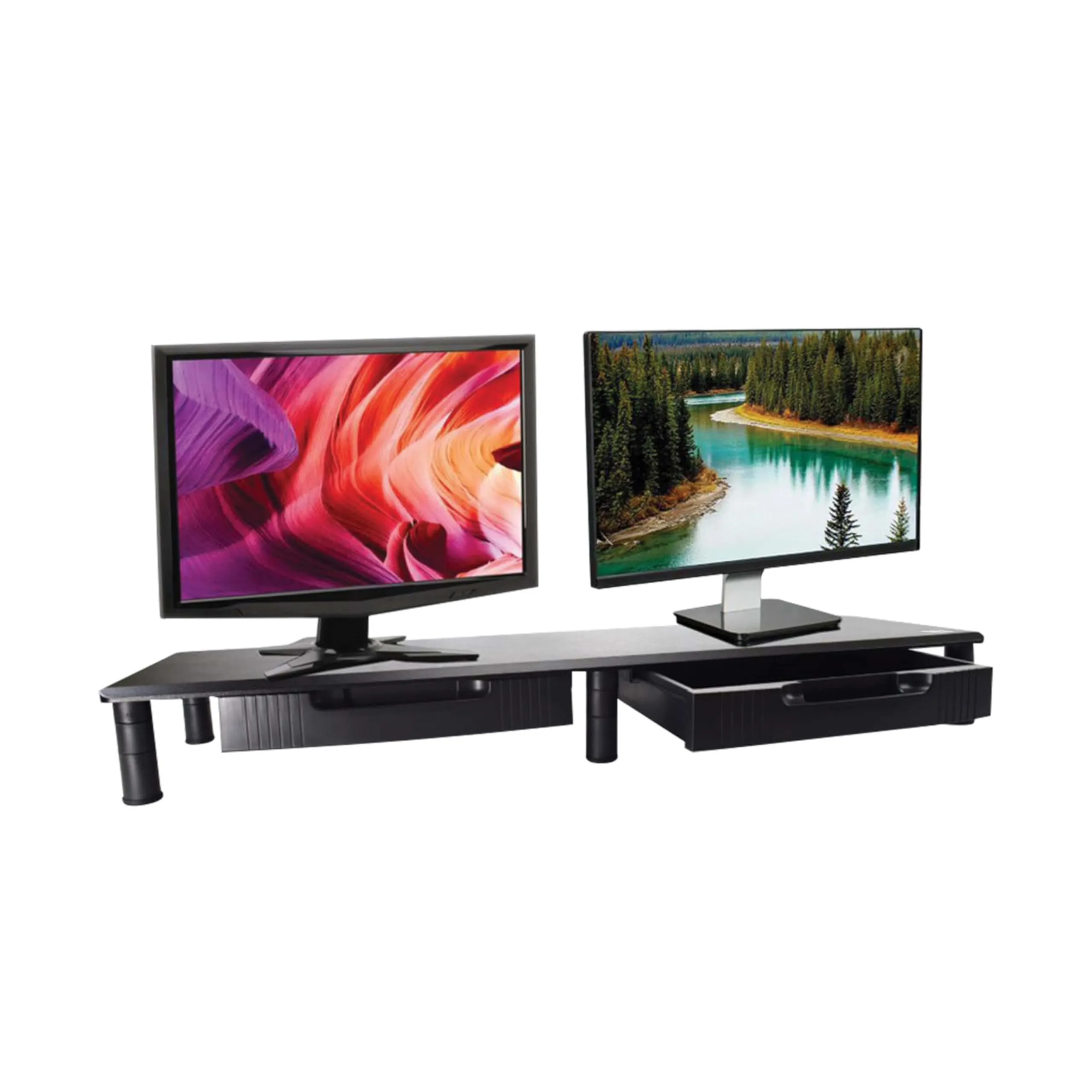 Tripp Lite series Extra-Wide Dual-Monitor Riser with Storage Drawers, 39 x 11 in., Black, TAA