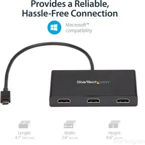 This 3-port USB-C to HDMI MST hub lets you connect three HDMI monitors to your USB Type-C Windows device, conveniently helping you to increase and maximize your productivity.